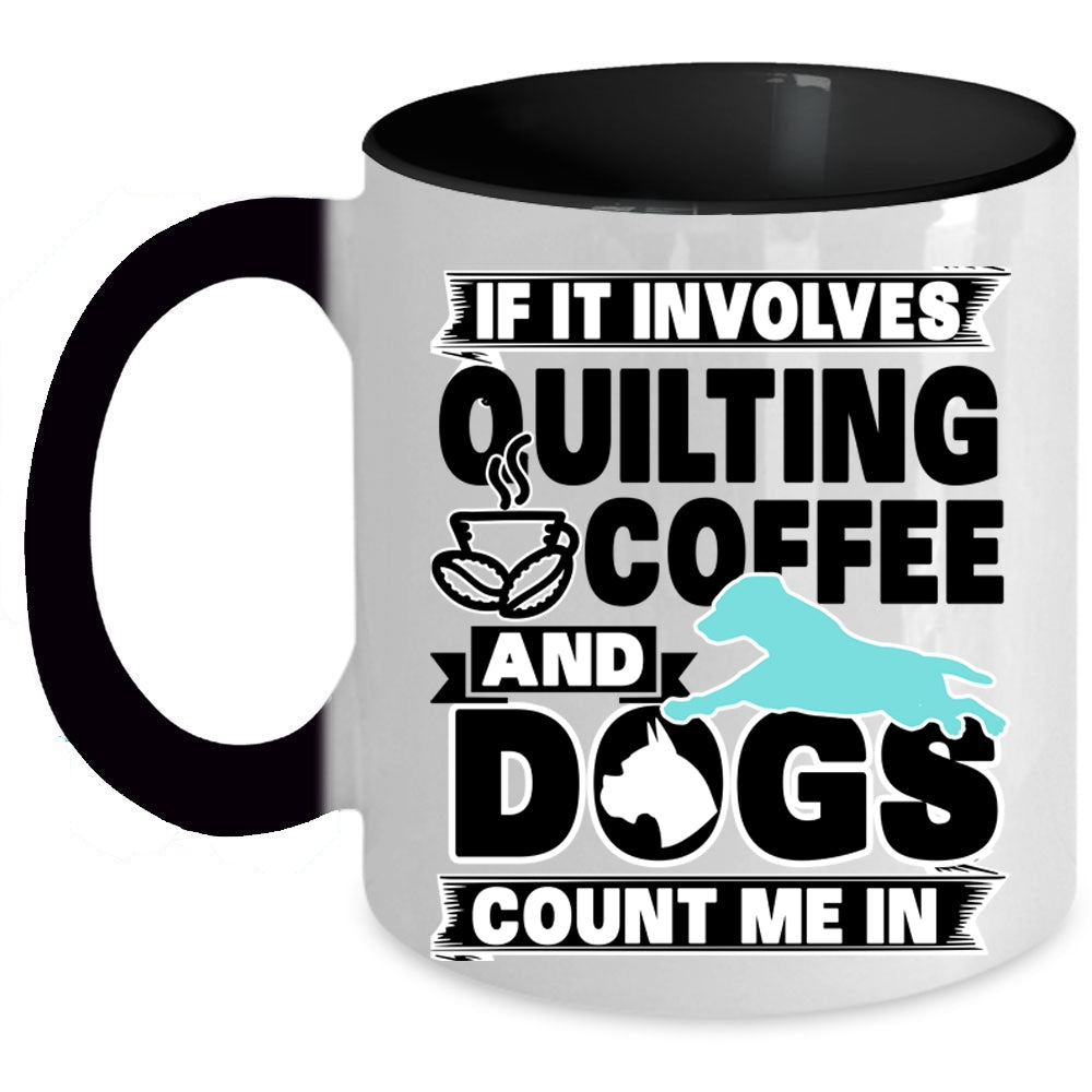 Funny Dog Lover Coffee Mug, Quilting Coffee And Dogs Accent Mug