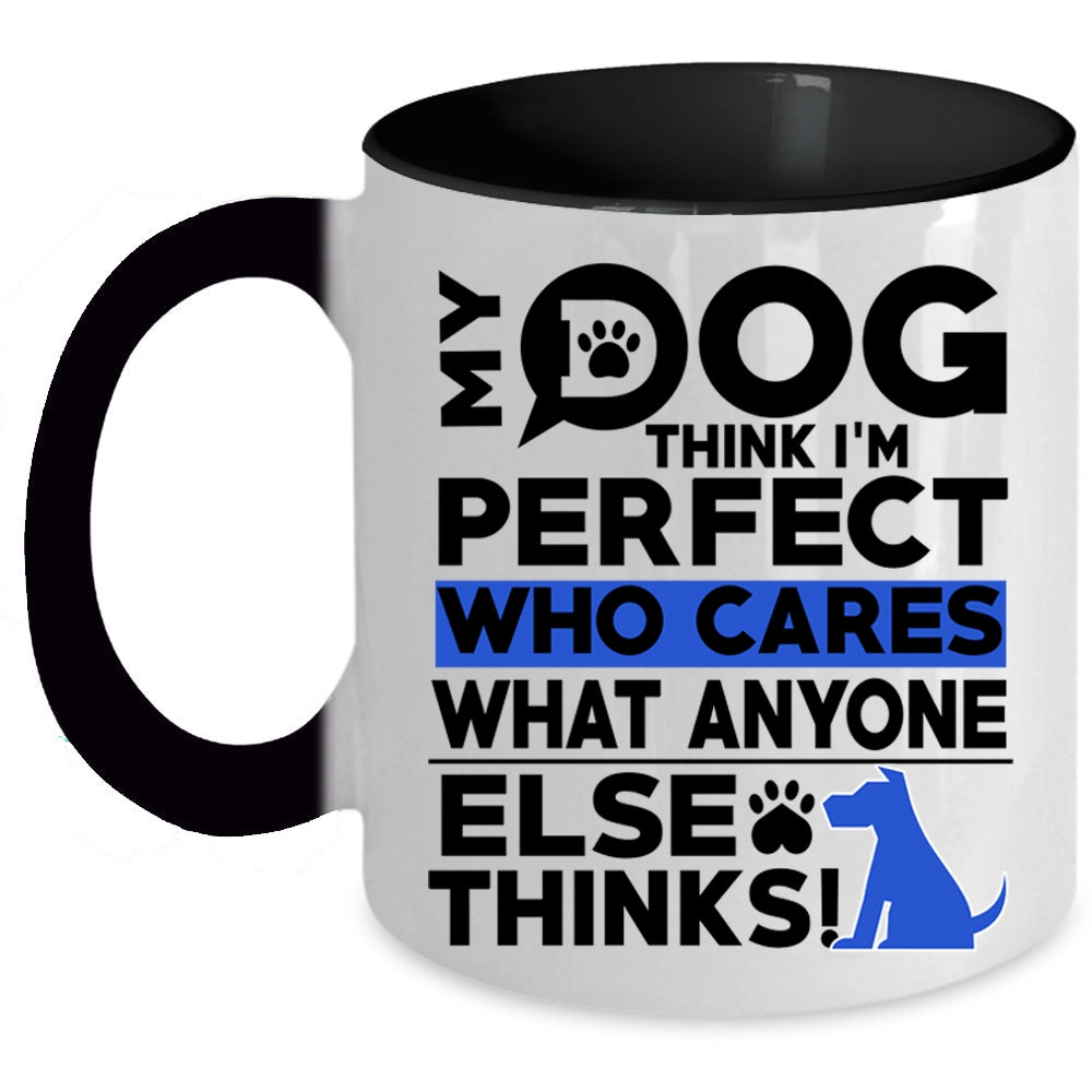 Funny Dogs Coffee Mug, My Dog Think I'm Perfect Accent Mug