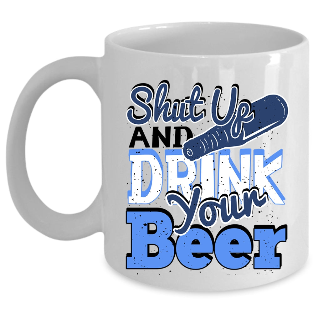 Funny Drinking Beer Coffee Mug, Shut Up And Drink Your Beer Cup