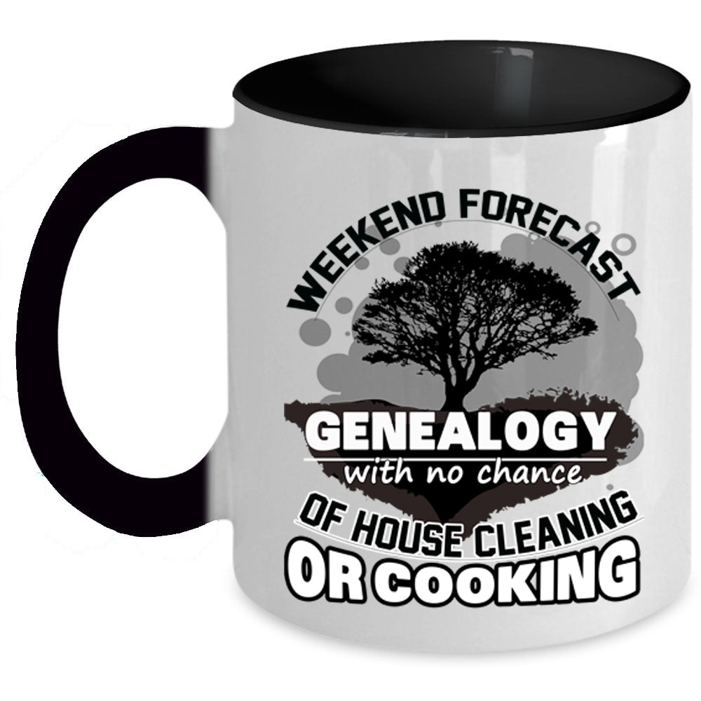 Funny Family Coffee Mug, Weekend Forecast Genealogy Accent Mug