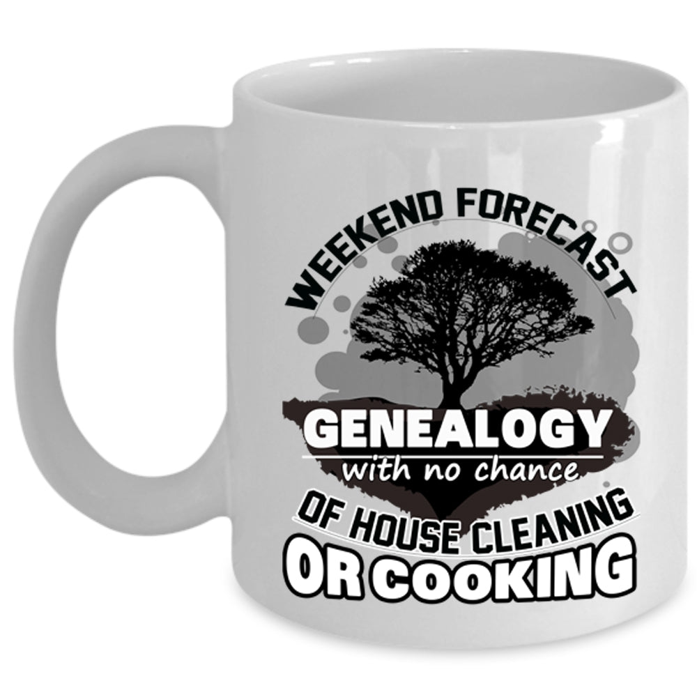 Funny Family Coffee Mug, Weekend Forecast Genealogy Cup