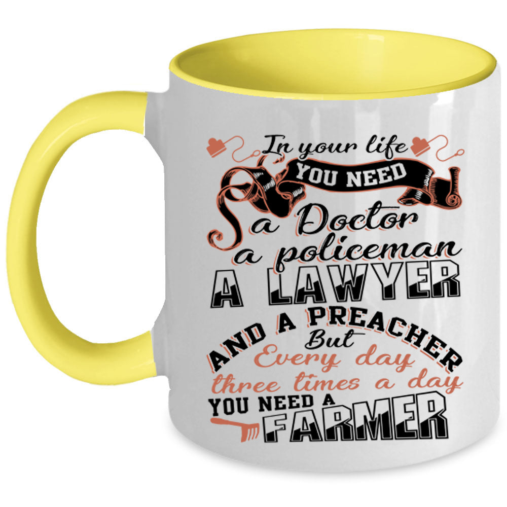 Funny Farmer Coffee Mug, Three Times A Day You Need A Farmer Accent Mug