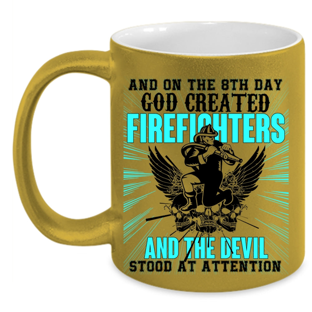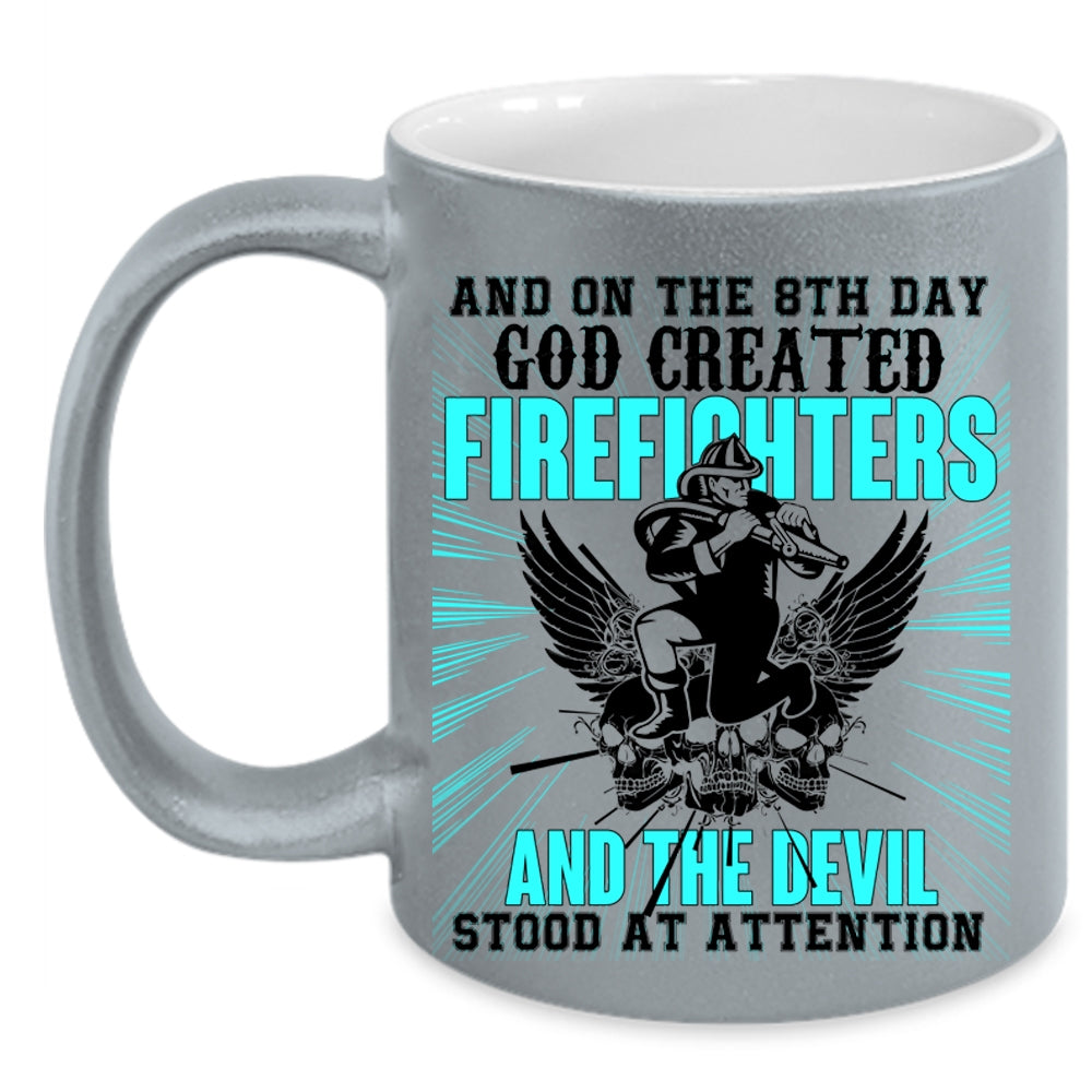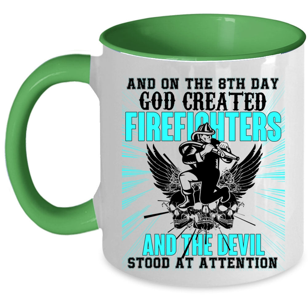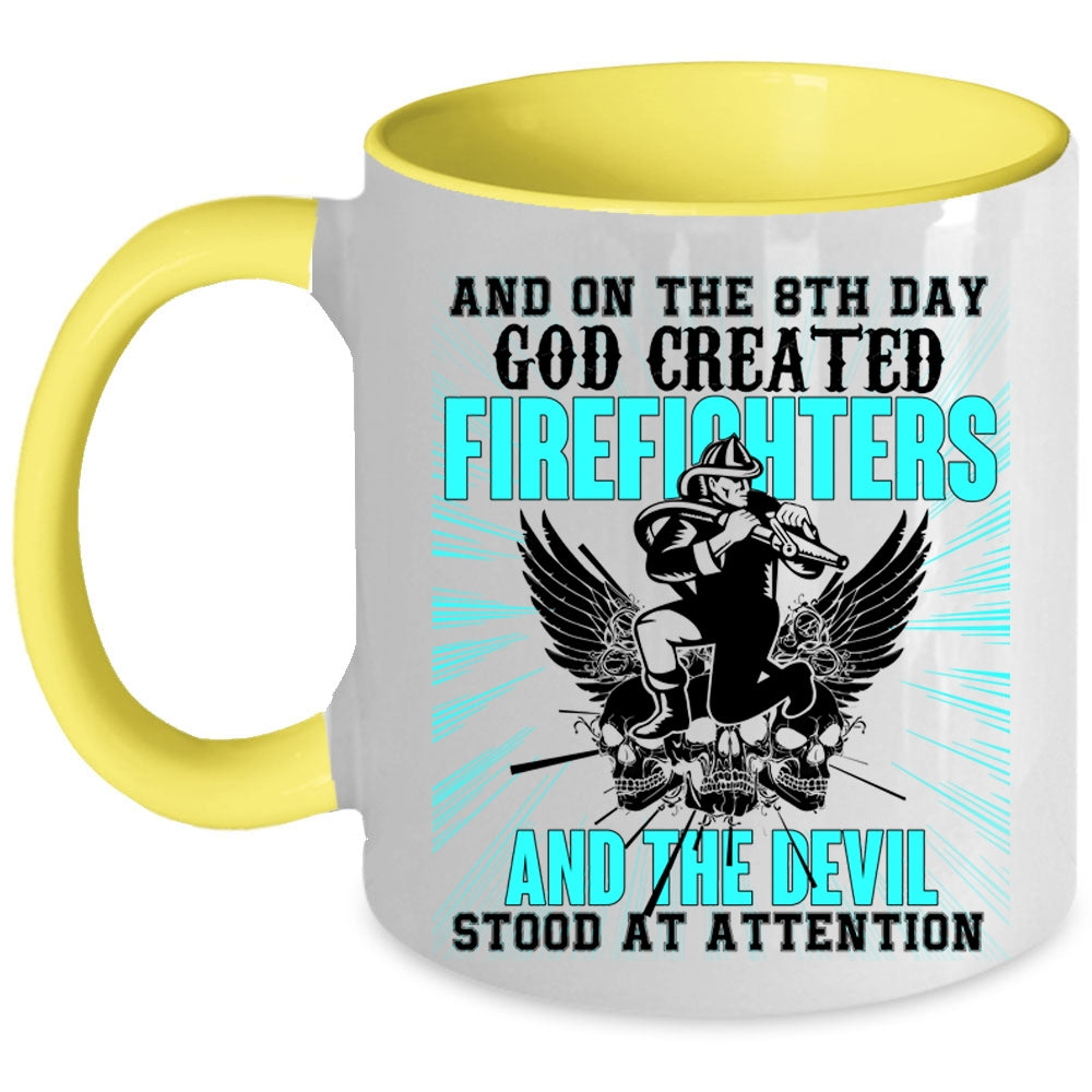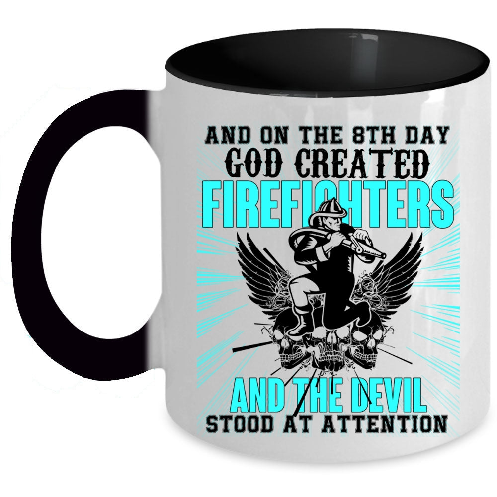 Funny Fire Fighting Coffee Mug, 8th Day God Created Firefighters Accent Mug