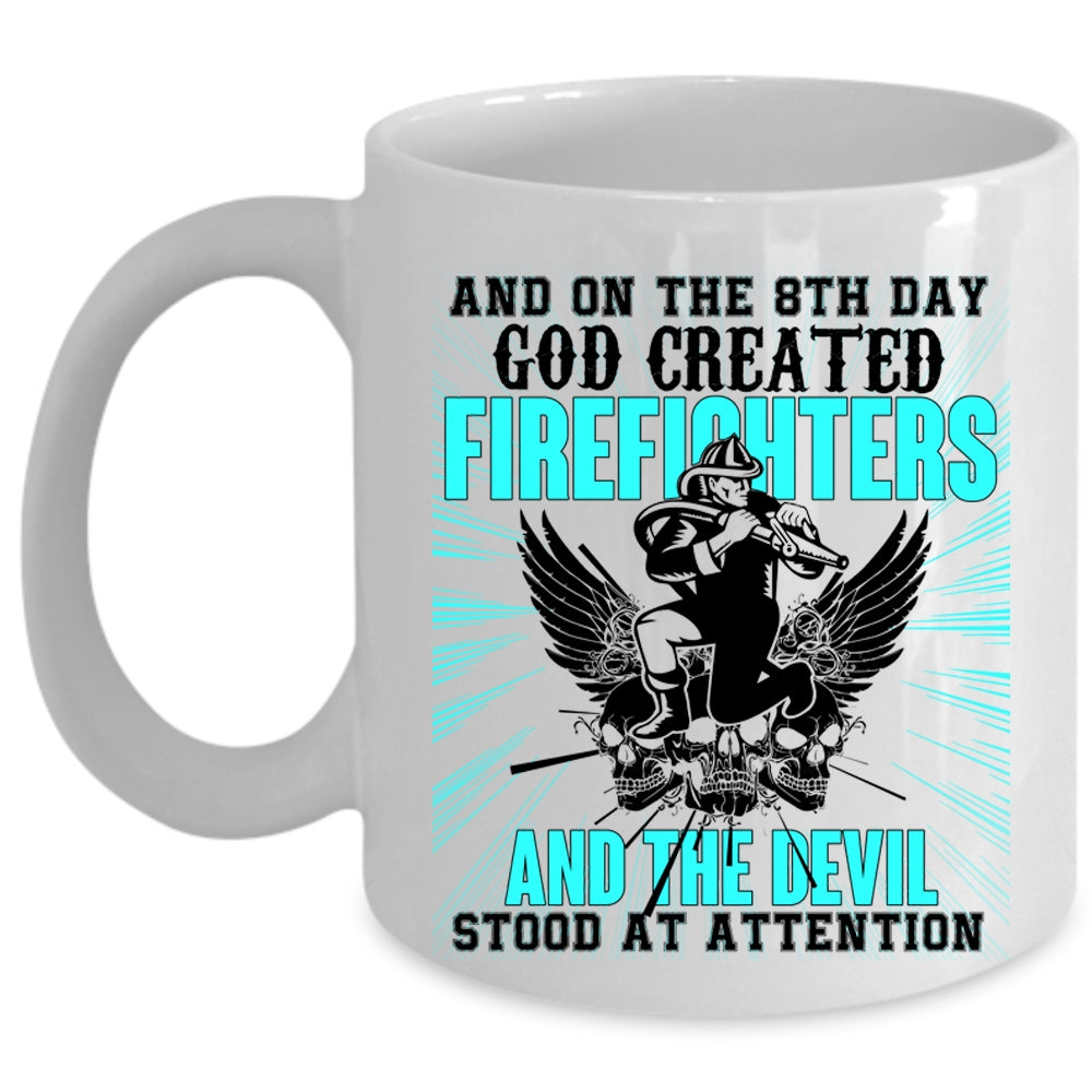 Funny Fire Fighting Coffee Mug, 8th Day God Created Firefighters Cup