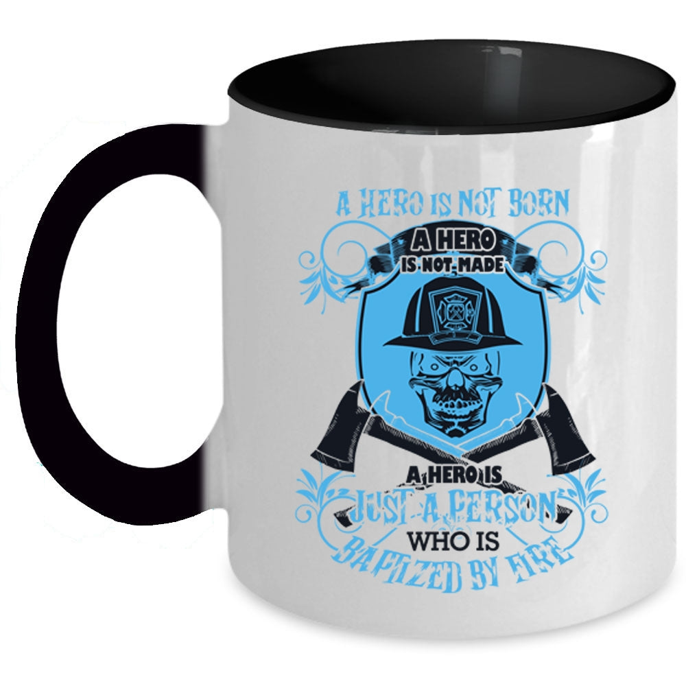 Funny Fireman Coffee Mug, Just A Person Is Baptized By Fire Accent Mug
