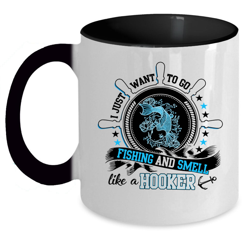 Funny Fisher Coffee Mug, I Just Want To Go Fishing Accent Mug