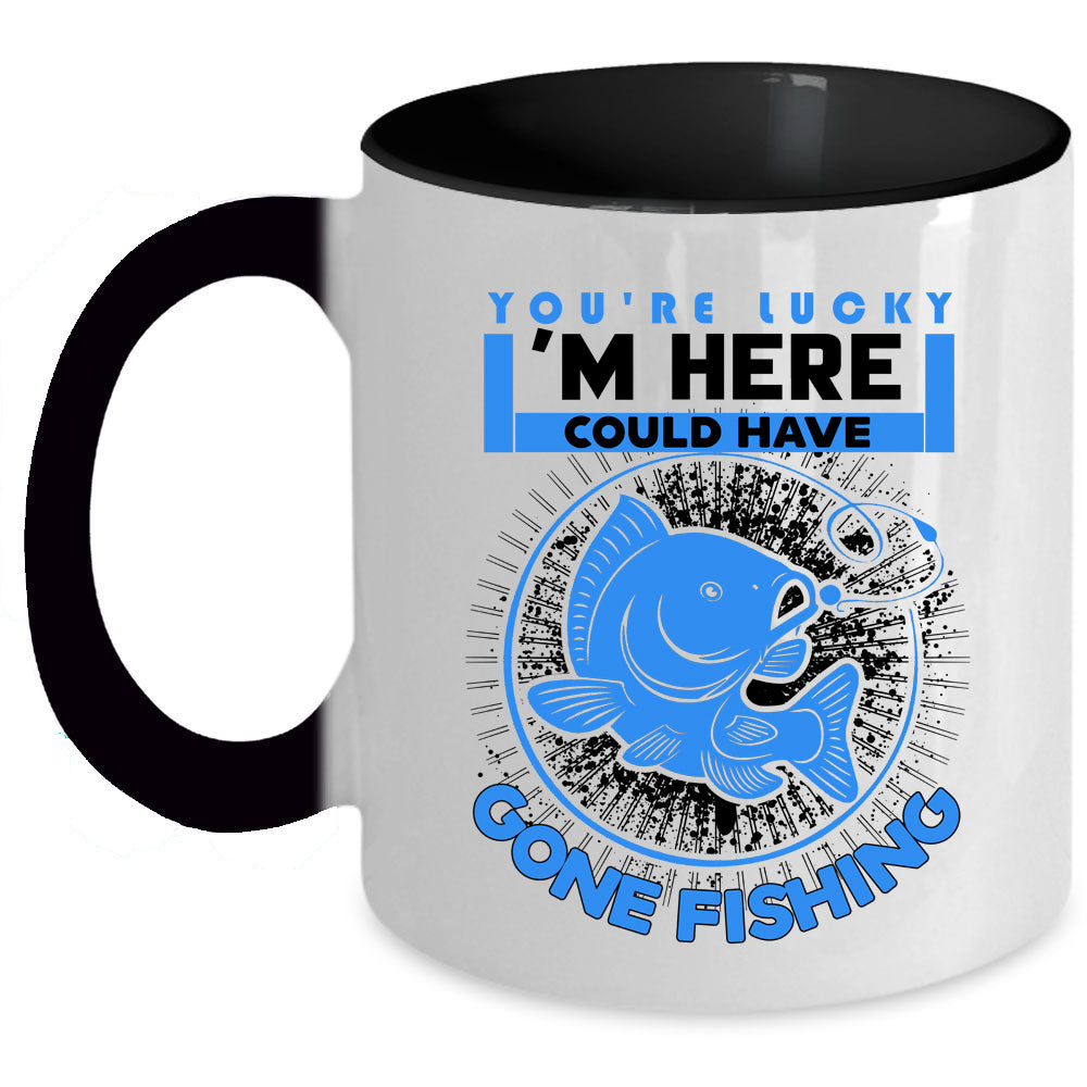 Funny Fishing Coffee Mug, I'm Here Could Have Gone Fishing Accent Mug