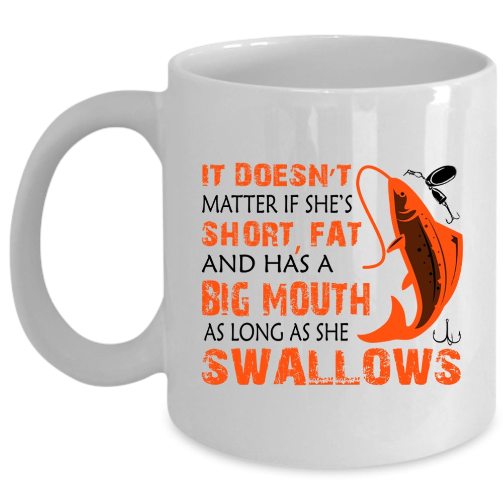 Funny Fishing Coffee Mug, It Doesn't Matter If She Has A Big Mouth Cup