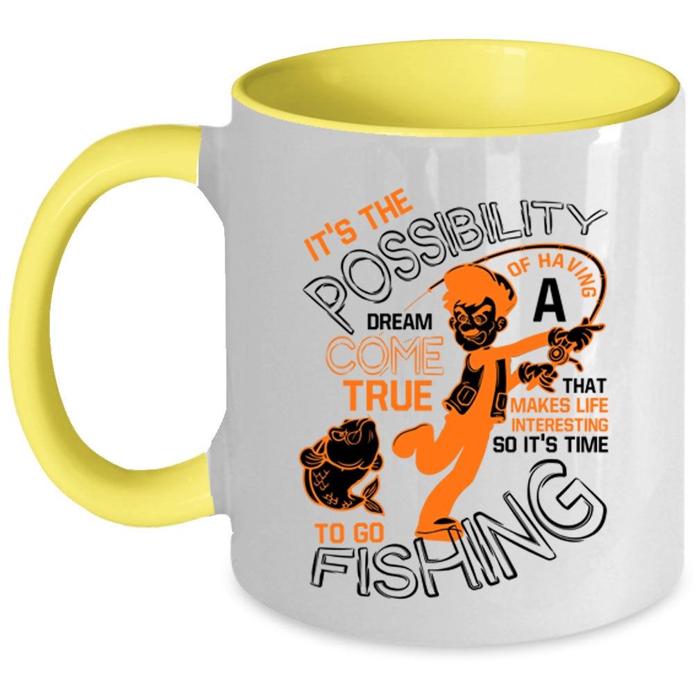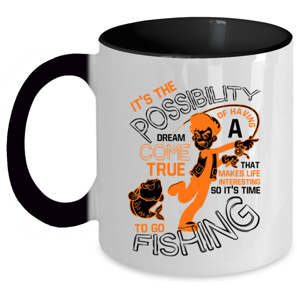 Funny Fishing Coffee Mug, It's Time To Go Fishing Accent Mug