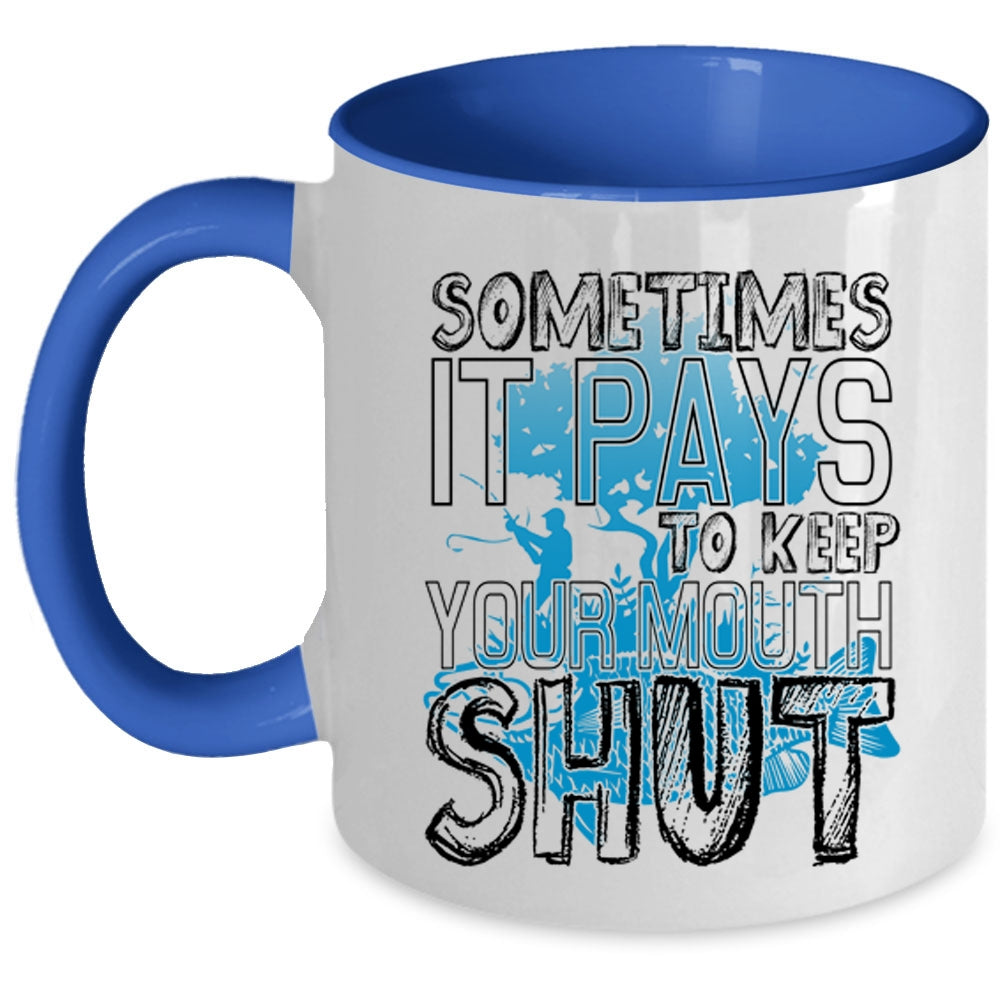 Funny Fishing Coffee Mug, Sometimes It Pays To Keep Your Mouth Accent Mug