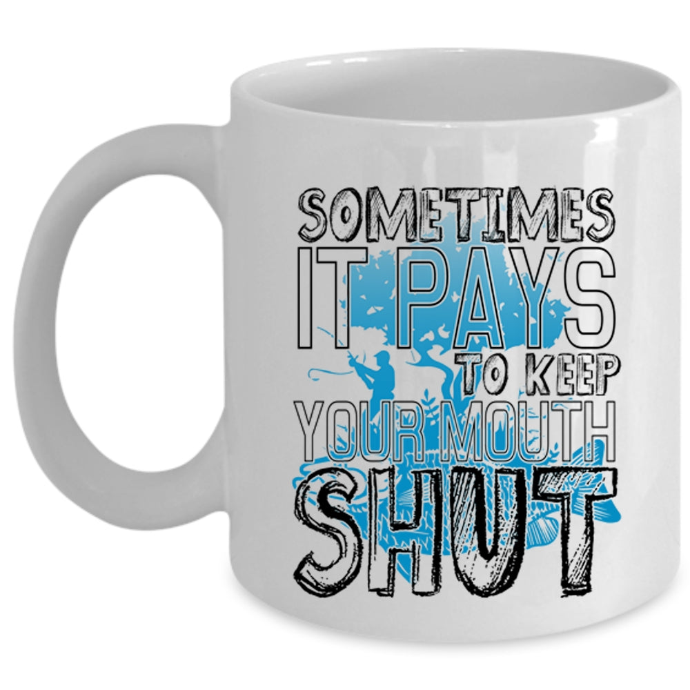 Funny Fishing Coffee Mug, Sometimes It Pays To Keep Your Mouth Cup