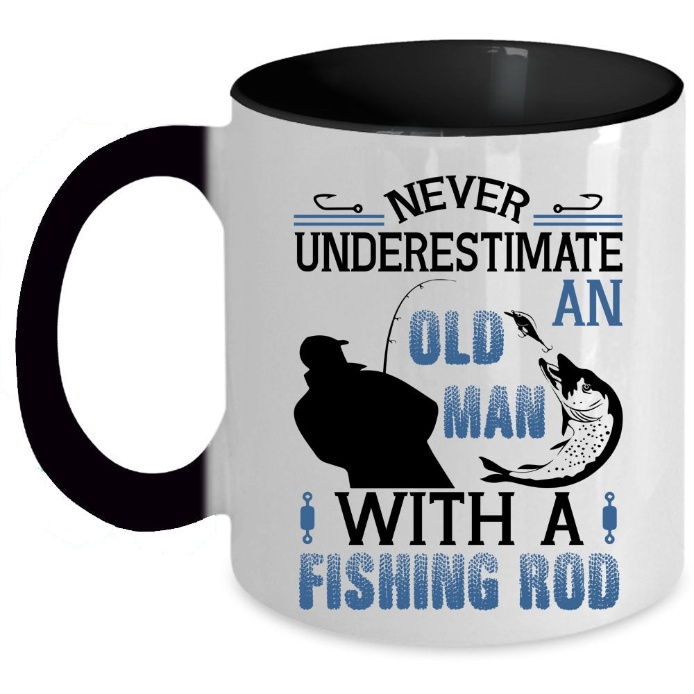 Funny Fishing Rod Coffee Mug, An Old Man With A Fishing Rod Accent Mug