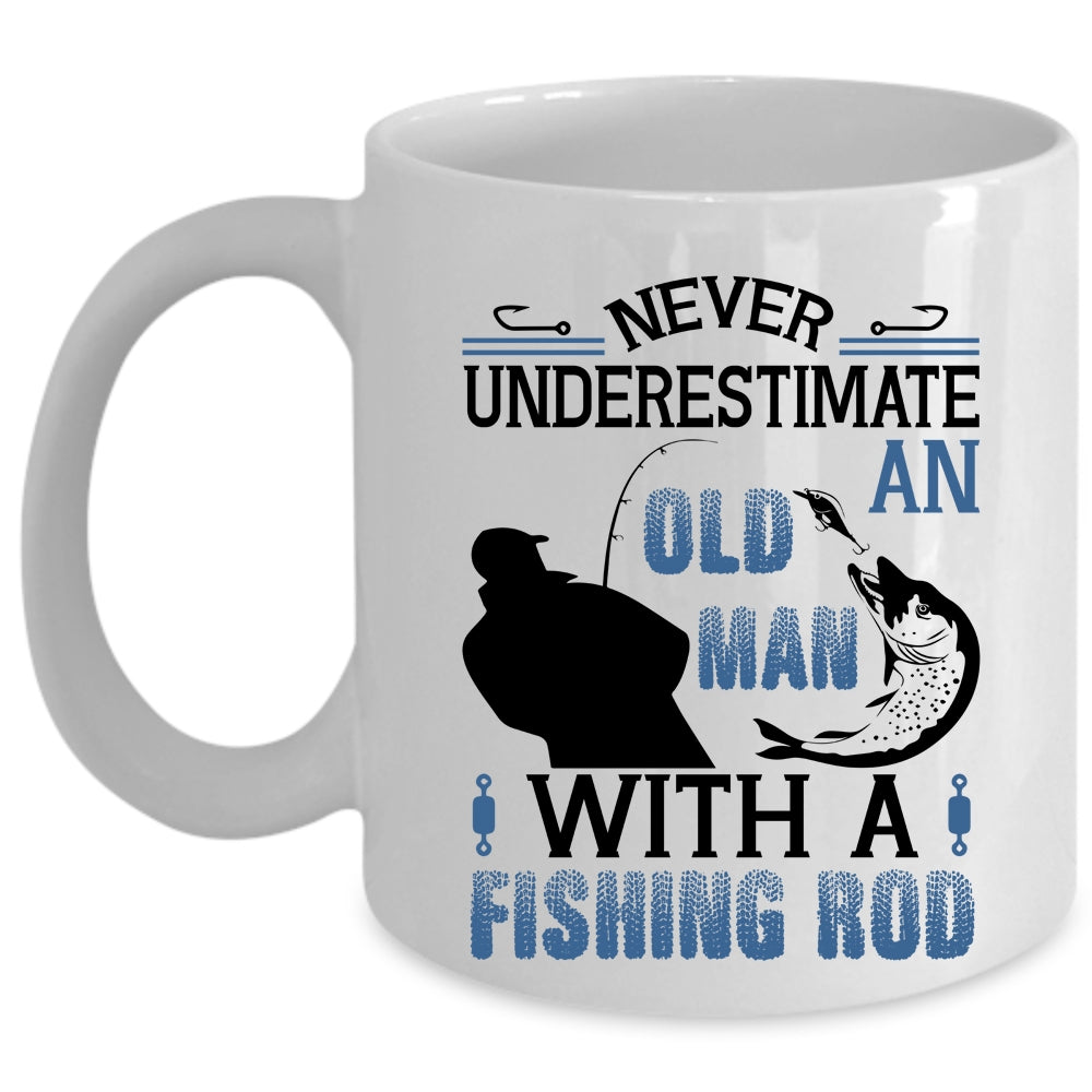 Funny Fishing Rod Coffee Mug, An Old Man With A Fishing Rod Cup