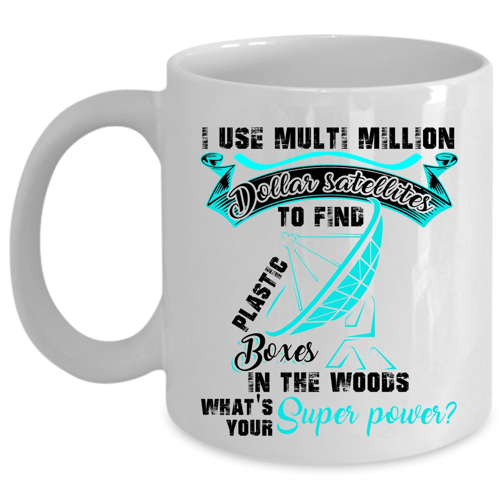 Funny Geocaching Coffee Mug, Plastic Boxes In The Woods Cup