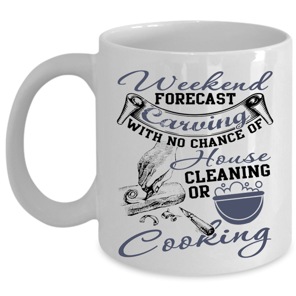 Funny Gift For Carver Coffee Mug, Weekend Forecast Carving Cup