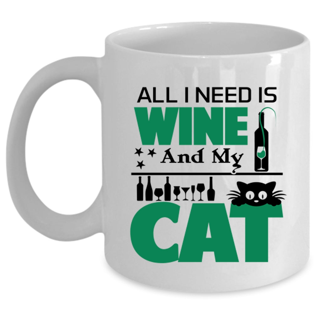 Funny Gift For Cat Lover Coffee Mug, All I Need Is Wine And My Cat Cup