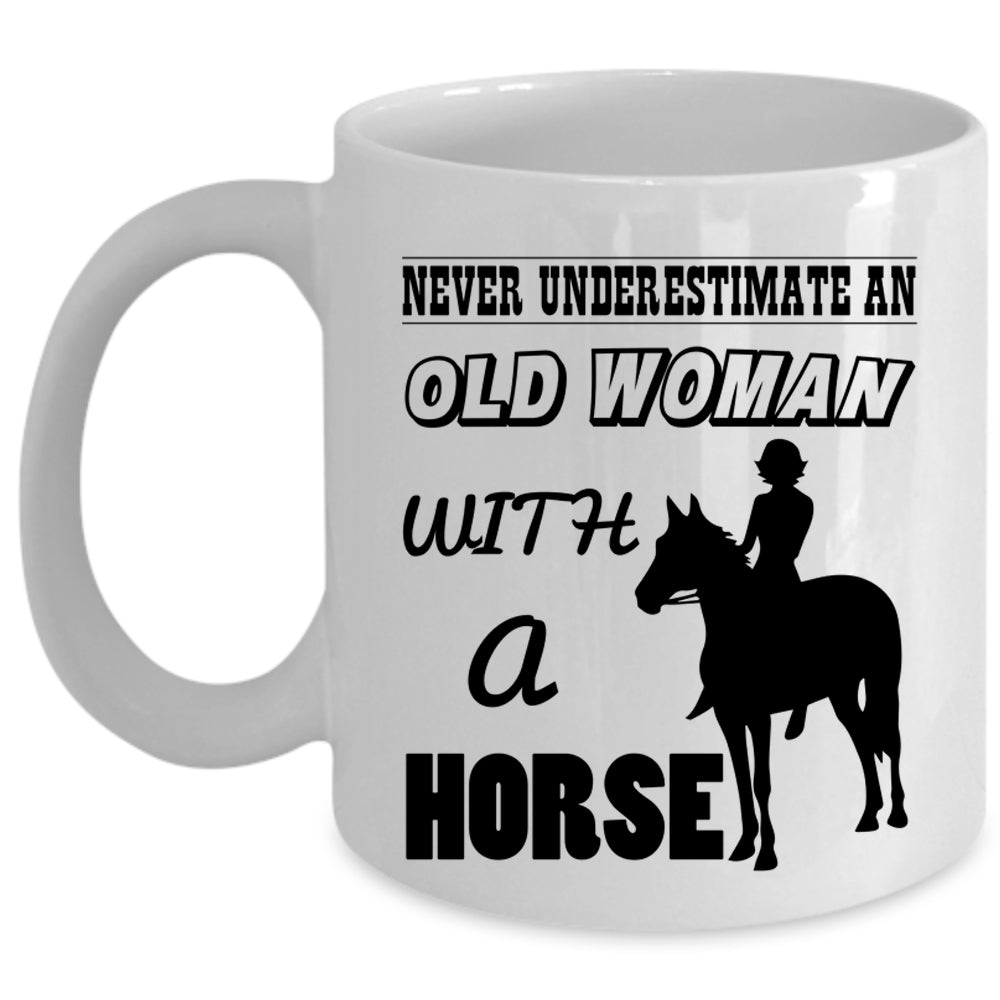 Funny Gift For Grandma Coffee Mug, An Old Woman With A Horse Cup