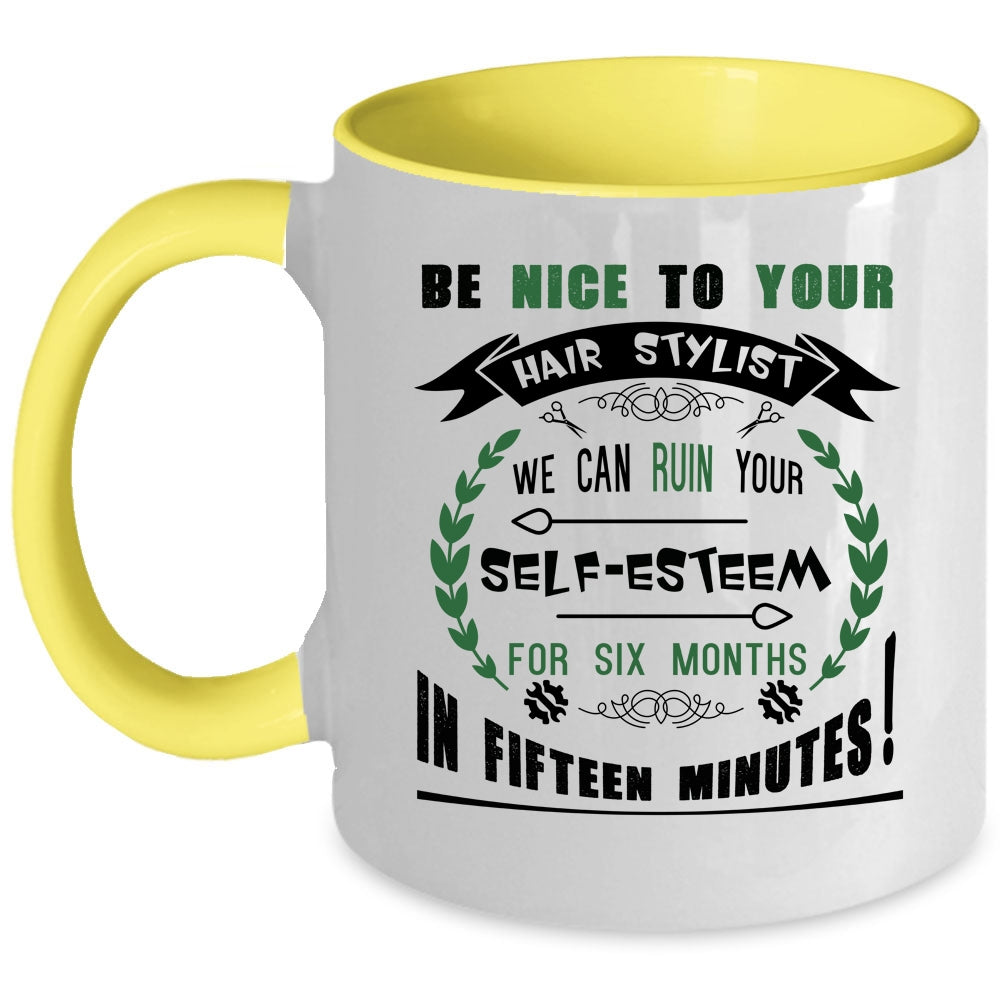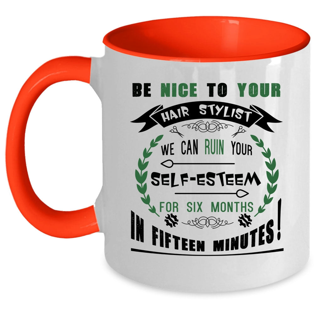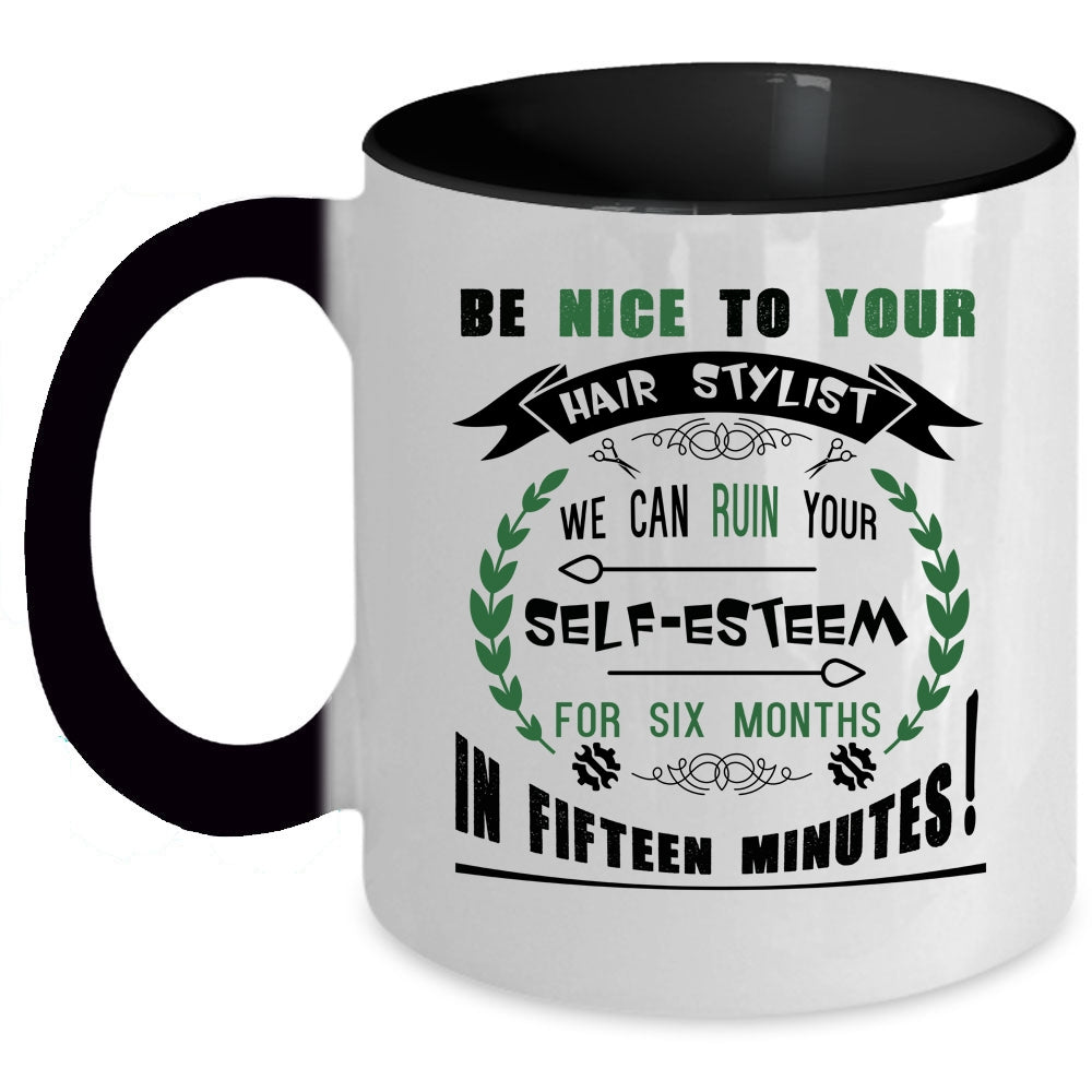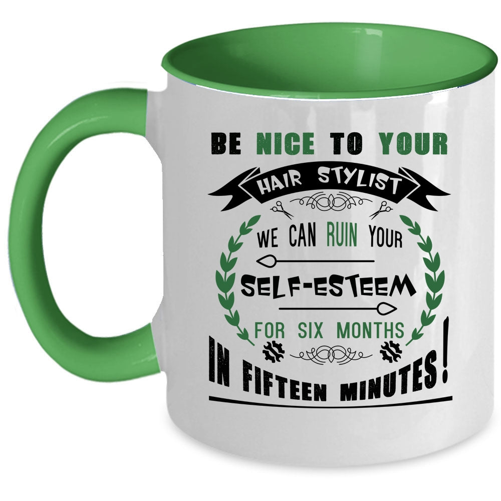 Funny Gift For Hairstylist Coffee Mug, Be Nice To Your Hair Stylist Accent Mug