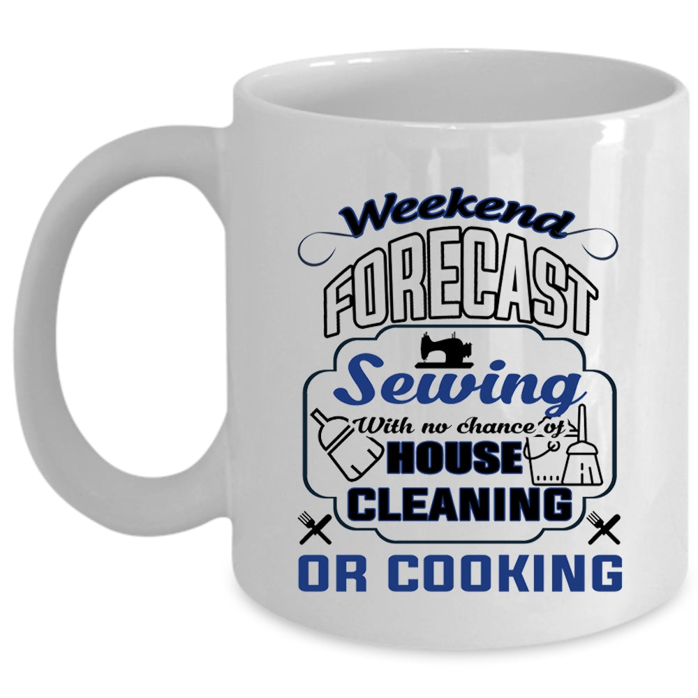 Funny Gift For My Mom Coffee Mug, Weekend Forecast Sewing Cup