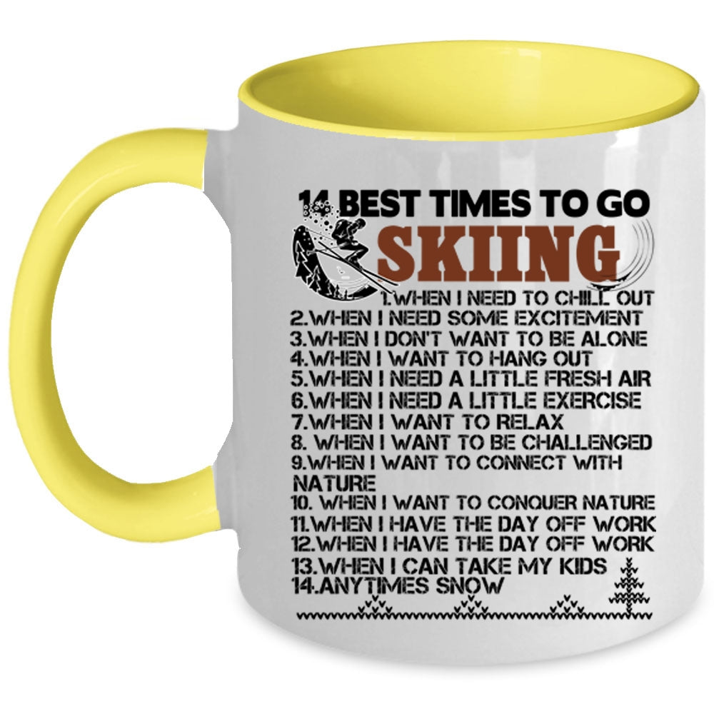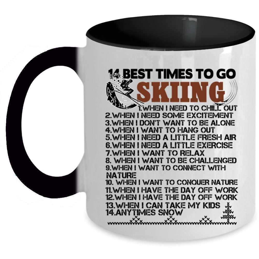Funny Gift For Skier Coffee Mug, 14 Best Times To Go Skiing Accent Mug
