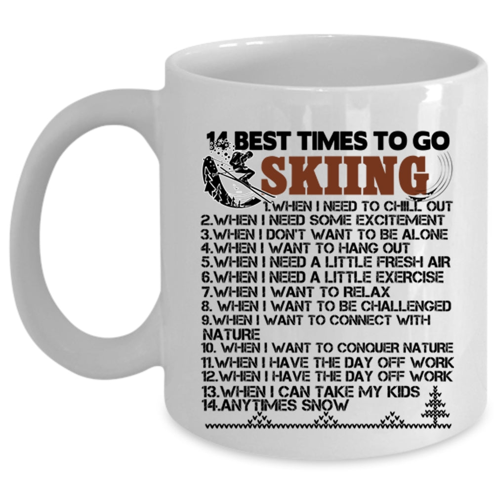 Funny Gift For Skier Coffee Mug, 14 Best Times To Go Skiing Cup