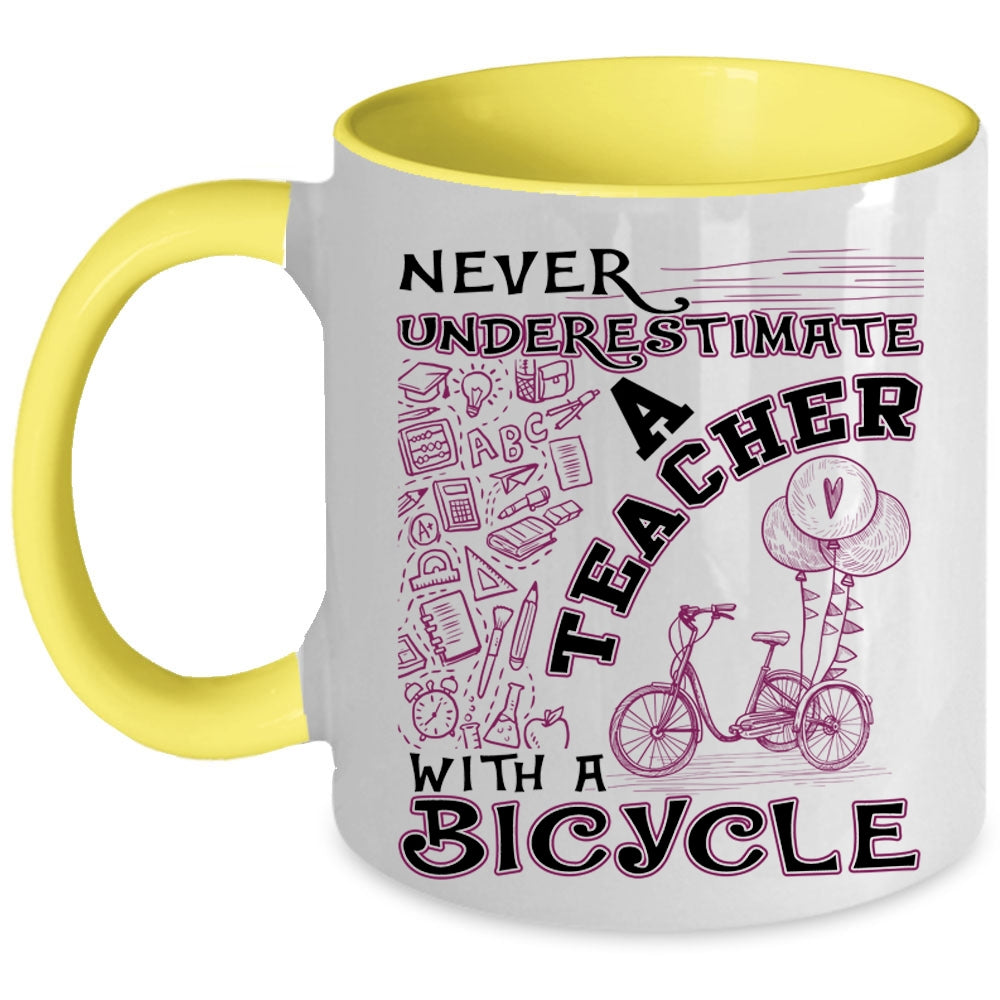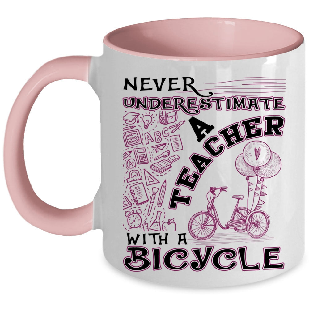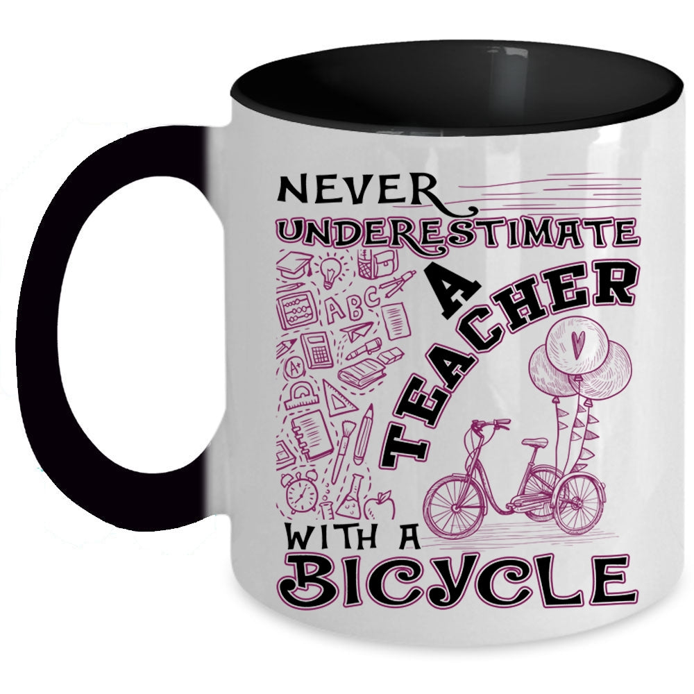 Funny Gift For Teacher Coffee Mug, Teacher With A Bicycle Accent Mug