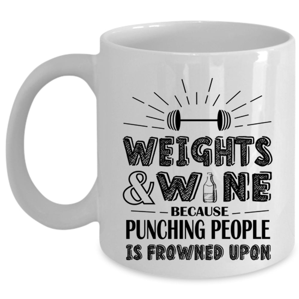 Funny Gift For Wine Drinker Coffee Mug, Weights And Wine Cup