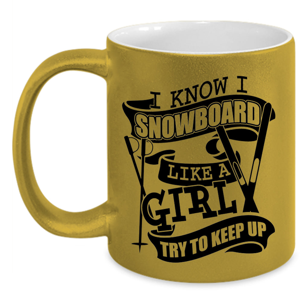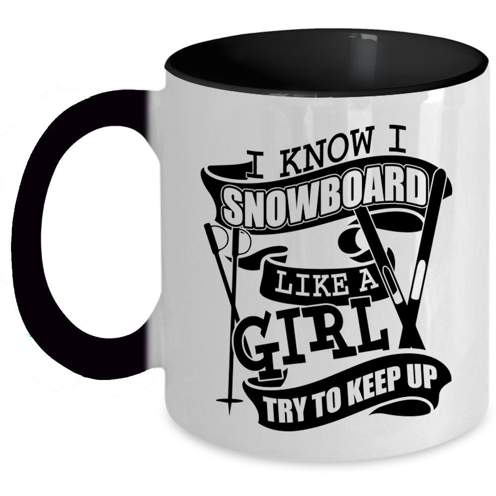 Funny Girl Coffee Mug, I Know I Snowboard Like A Girl Accent Mug