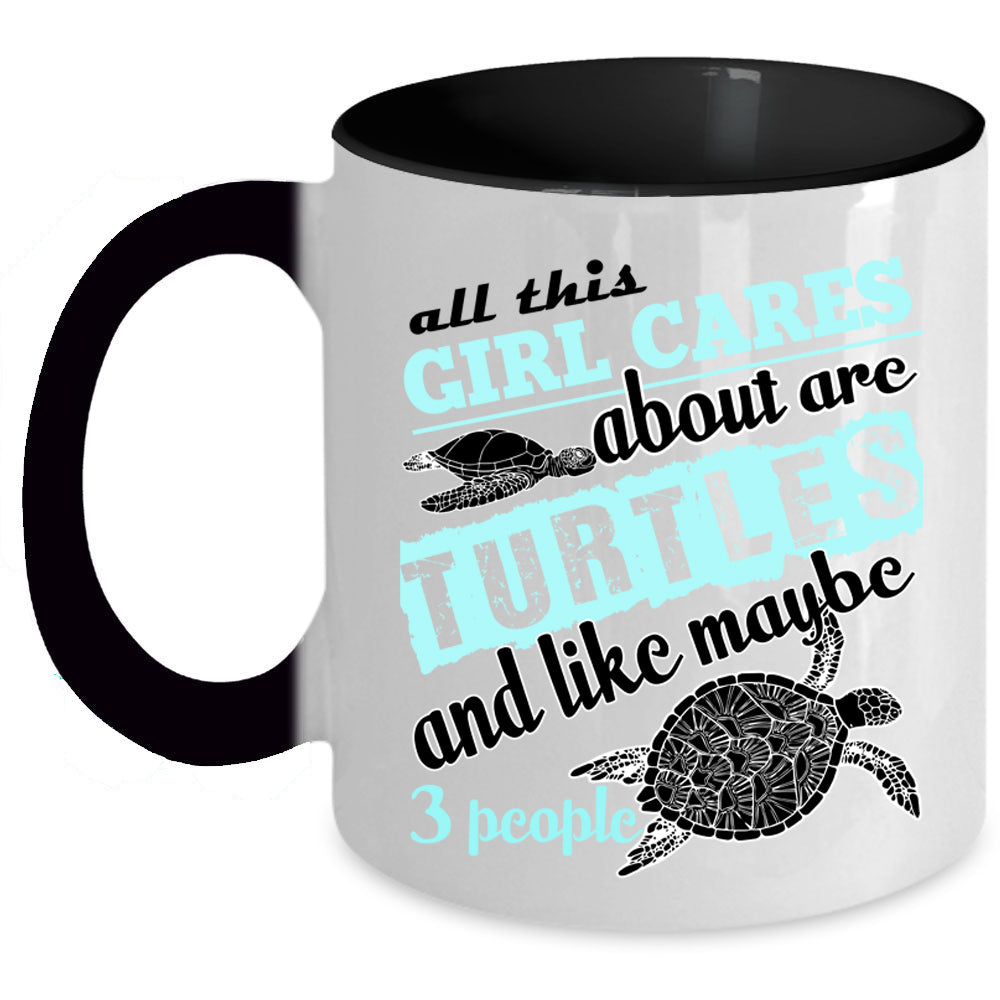 Funny Girls Coffee Mug, All This Girl Cares About Are Turtles Accent Mug