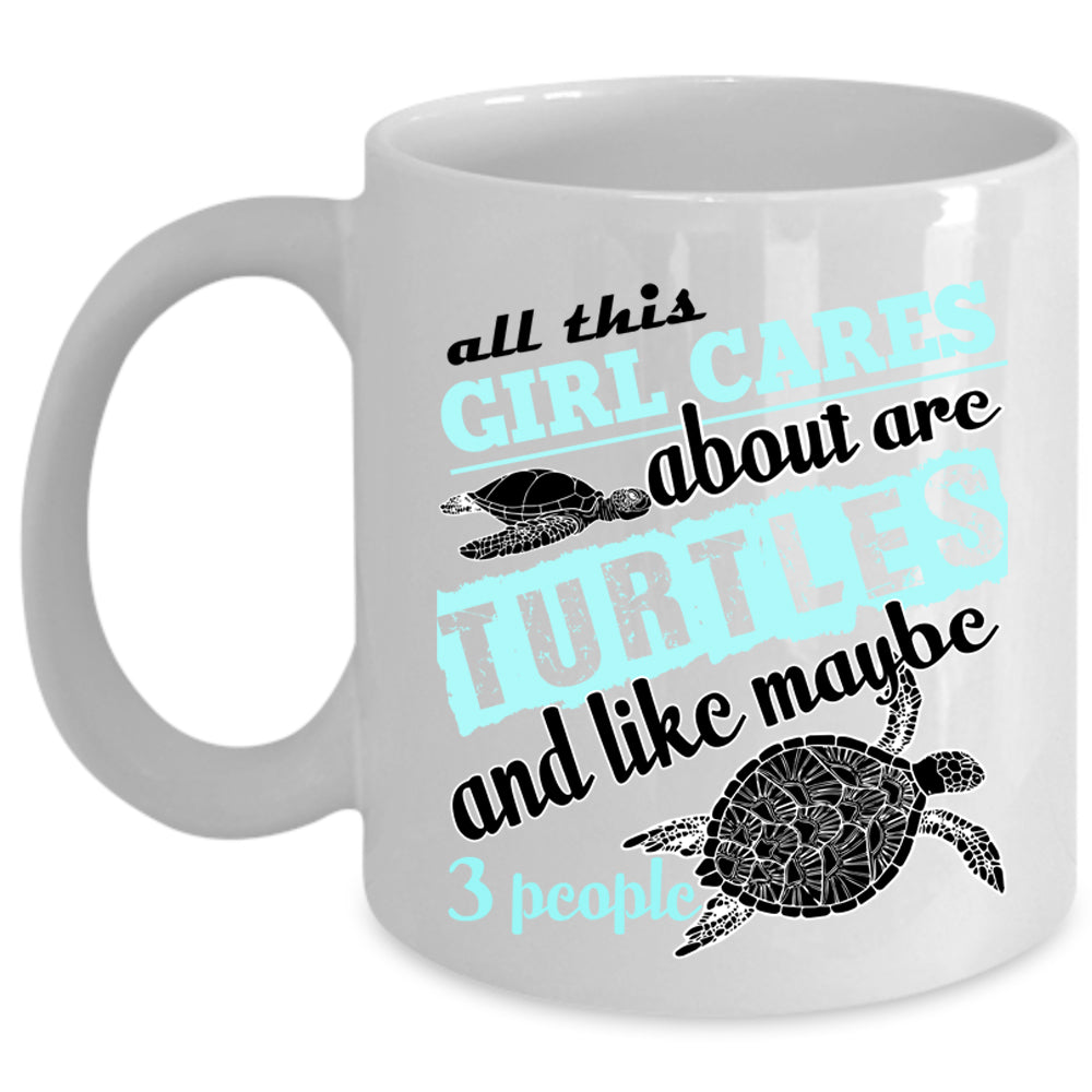 Funny Girls Coffee Mug, All This Girl Cares About Are Turtles Cup