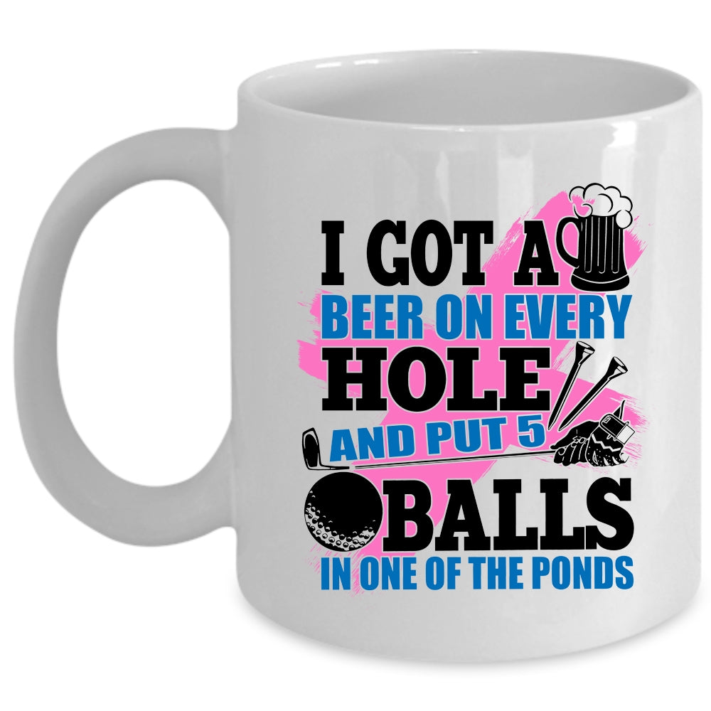 Funny Golf Coffee Mug, I Got A Beer On Every Hole Cup