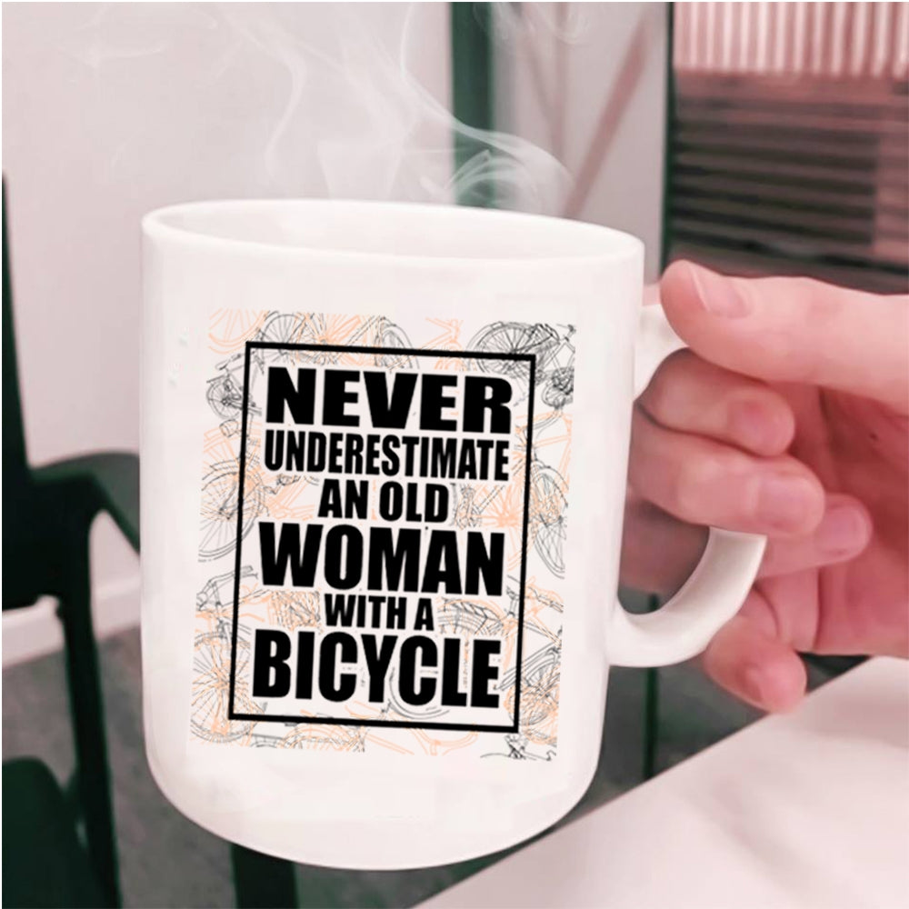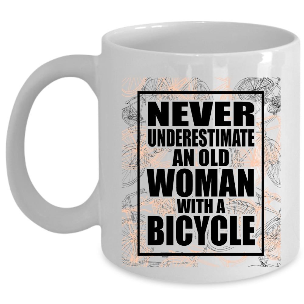 Funny Grandmas Coffee Mug, An Old Woman With A Bicycle Cup
