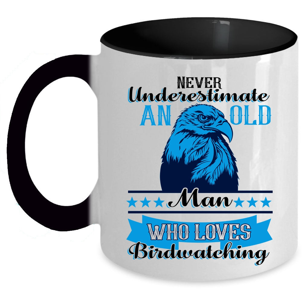 Funny Grandpa Coffee Mug, An Old Man Loves Birdwatching Accent Mug