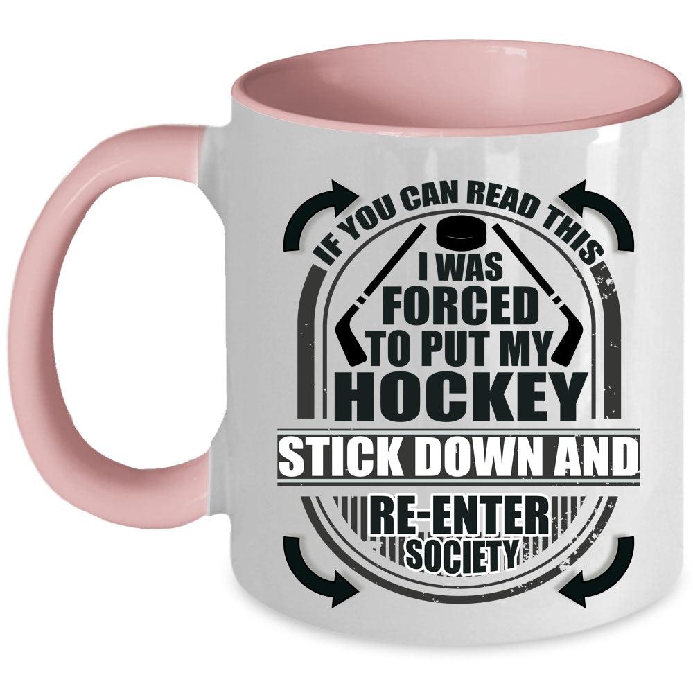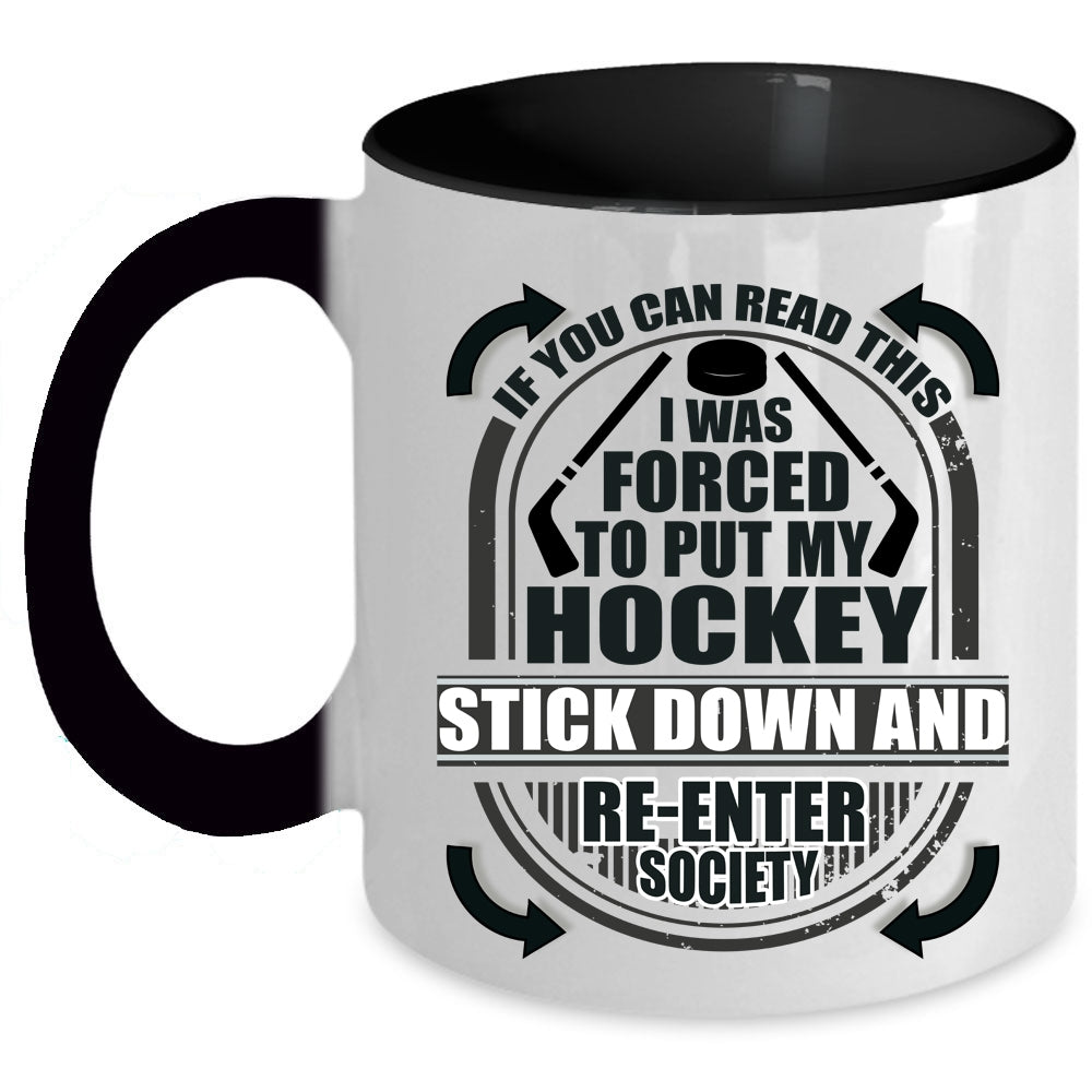 Funny Hockey Coffee Mug, I Was Forced To Put My Hockey Stick Down Accent Mug