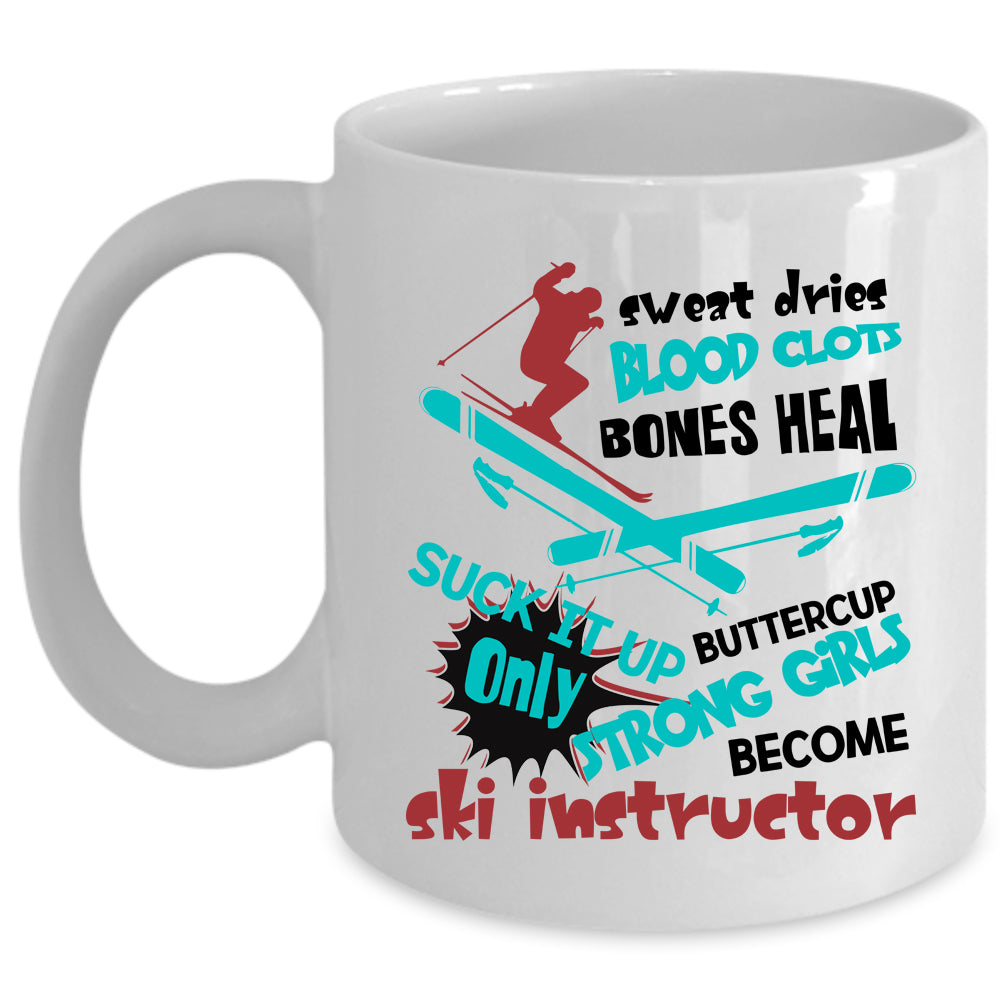 Funny Instructor Coffee Mug, Only Strong Girls Become Ski Instructor Cup