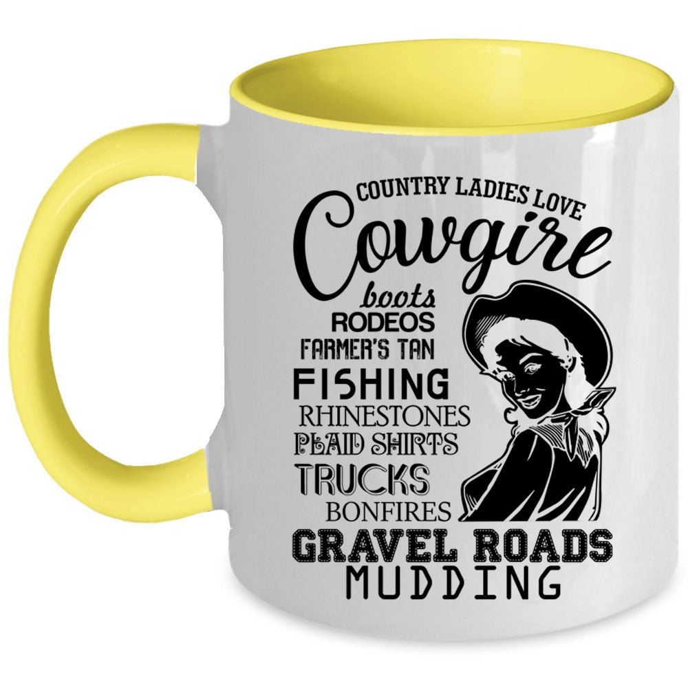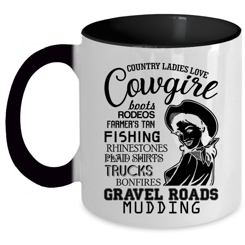 Funny Lady Coffee Mug, Country Ladies Love Cowgirl Accent Mug