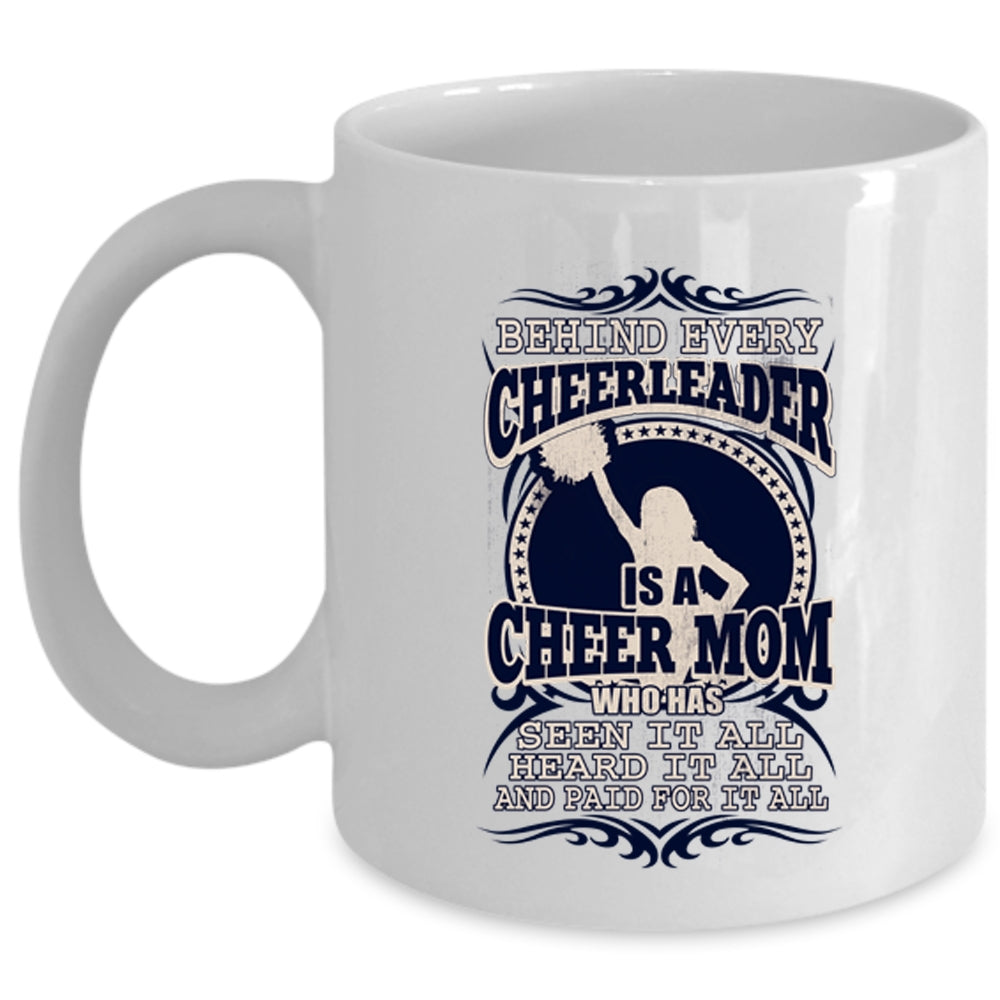 Funny Mama Coffee Mug, Behind Every Cheerleader Is A Cheer Mom Cup