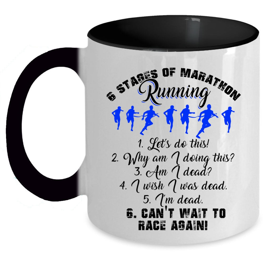 Funny Marathon Runner Coffee Mug, 6 Stages Of Marathon Running Accent Mug