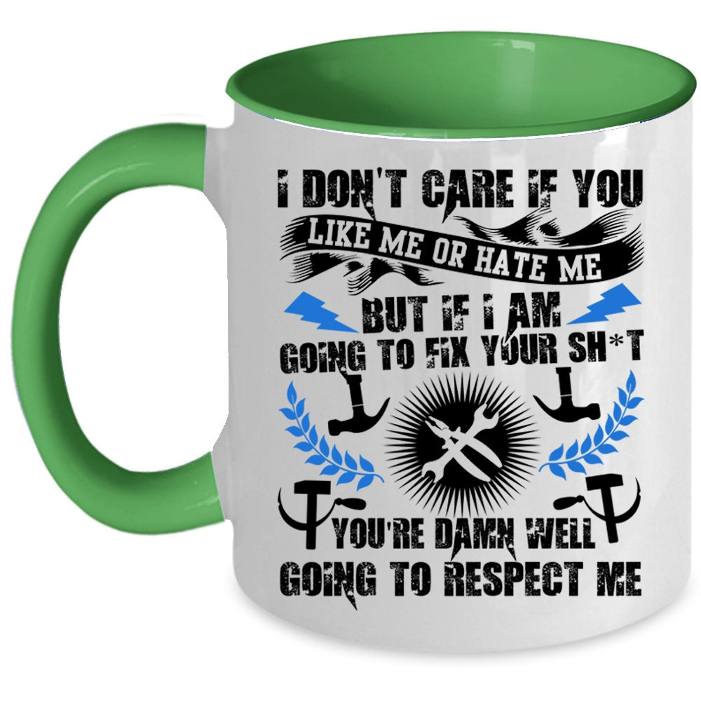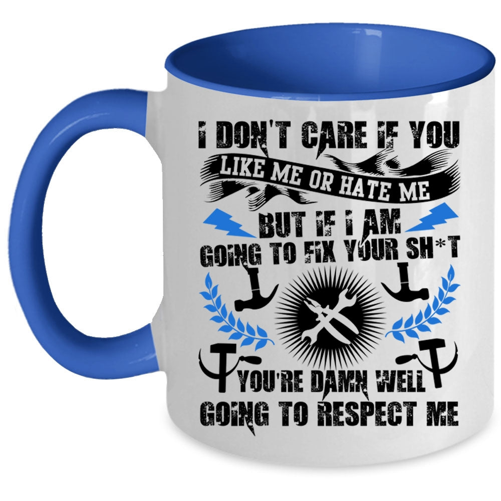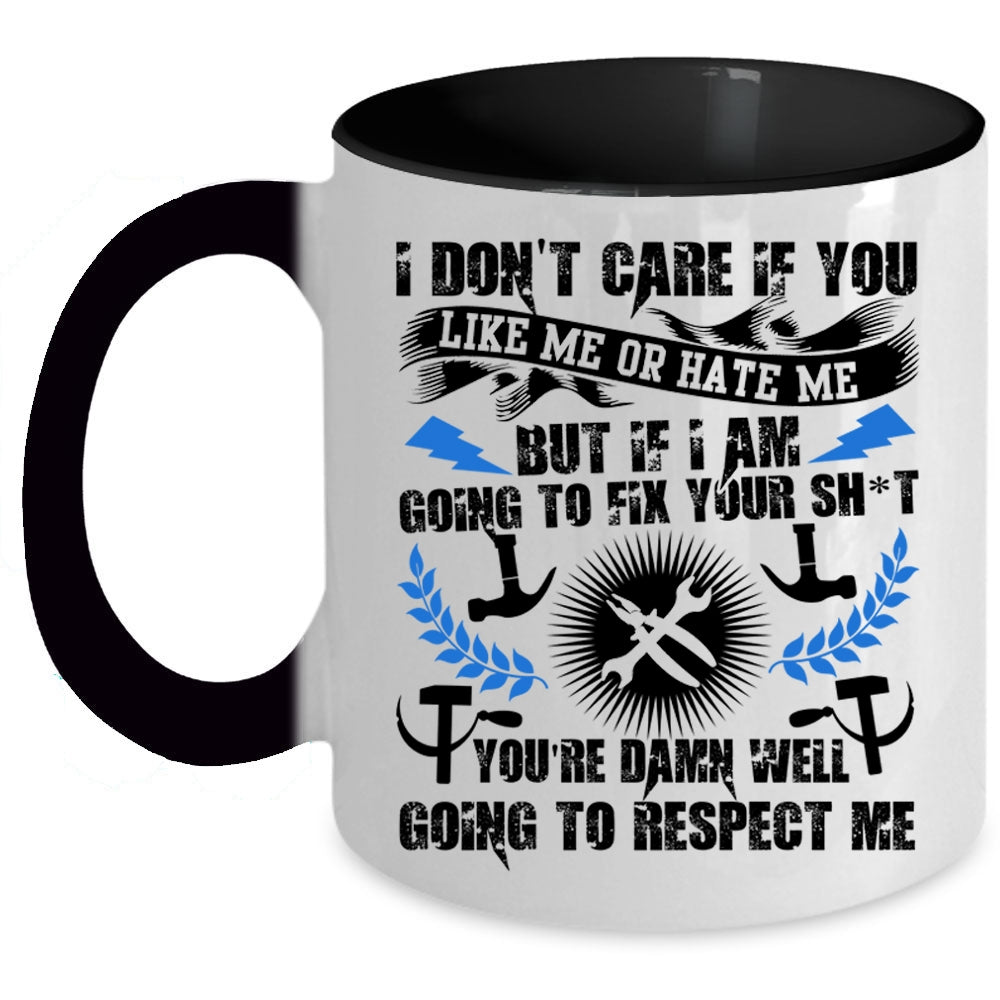 Funny Mechanics Coffee Mug, I Don't Care If You Like Me Or Hate Me Accent Mug