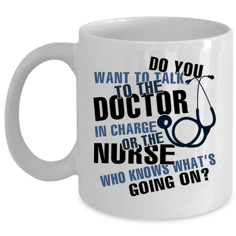 Funny Nurses Coffee Mug, Do You Want To talk To The Doctor Cup