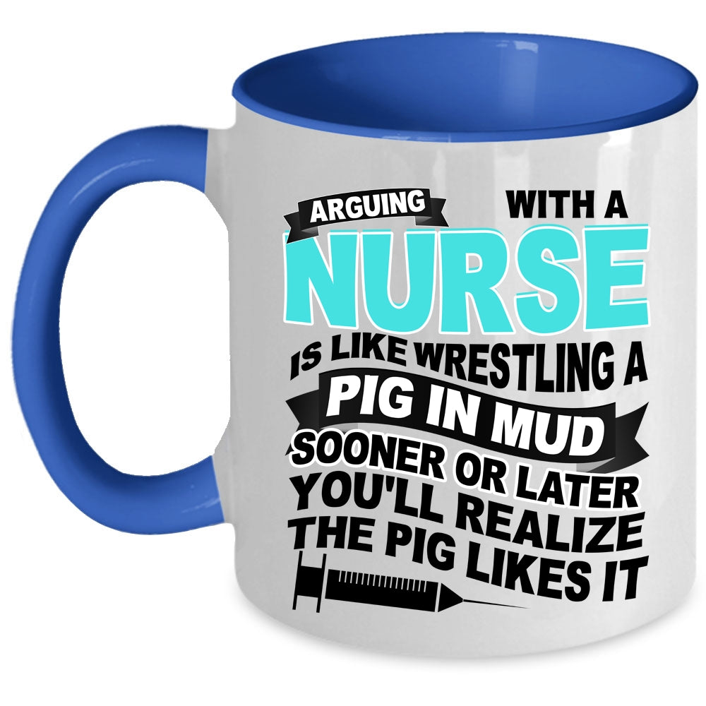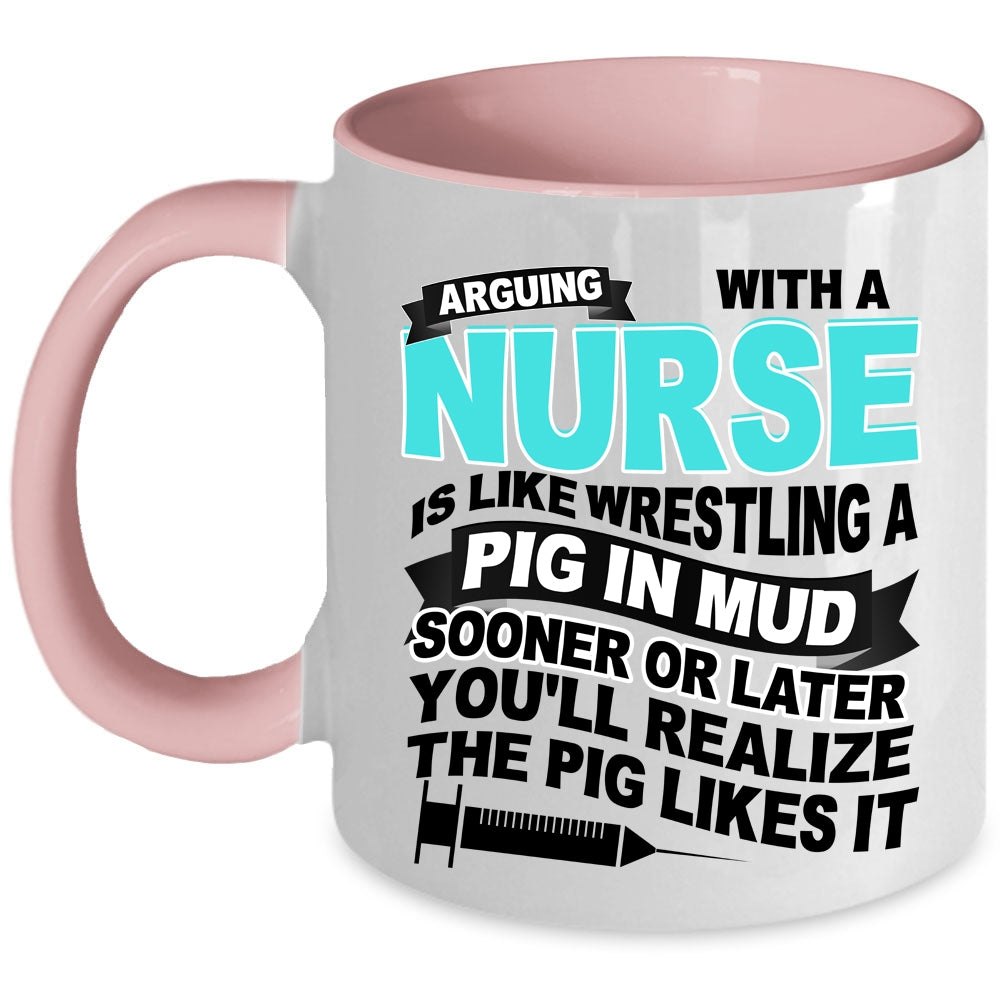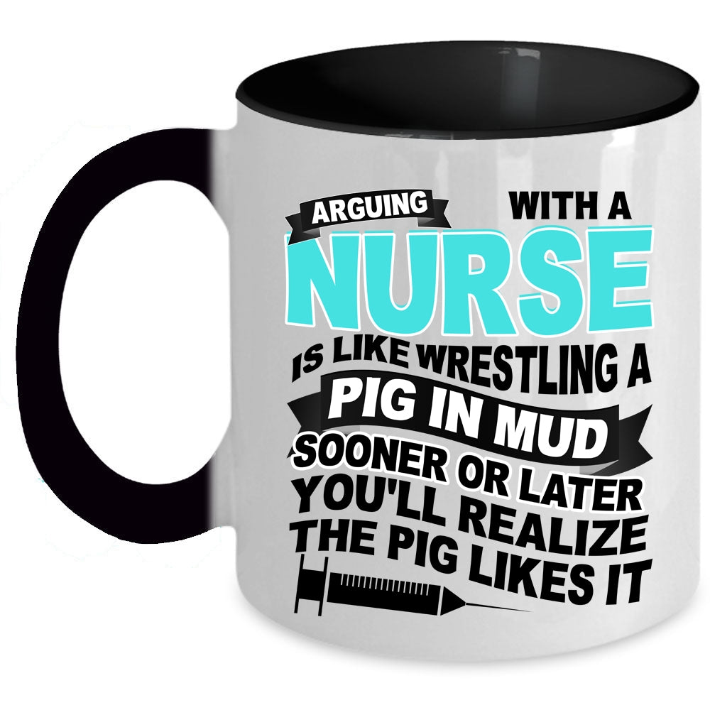 Funny Nurses Coffee Mug, Don't Arguing With A Nurse Accent Mug