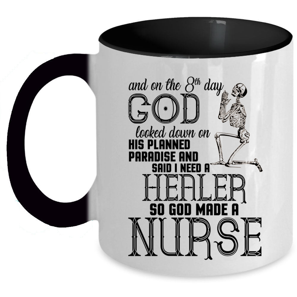 Funny Nurses Coffee Mug, On The 8th Day God Made A Nurse Accent Mug