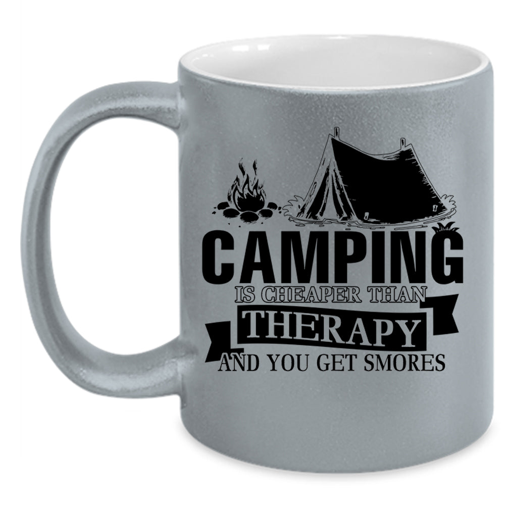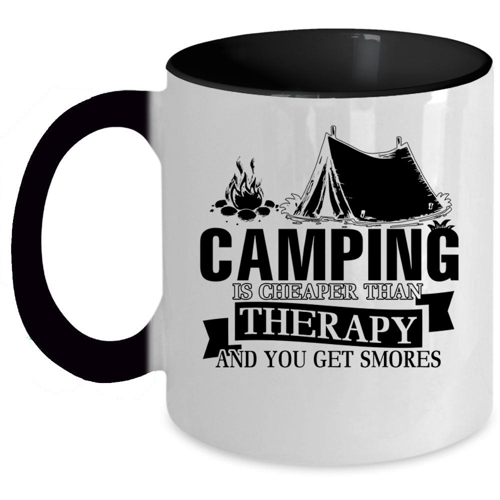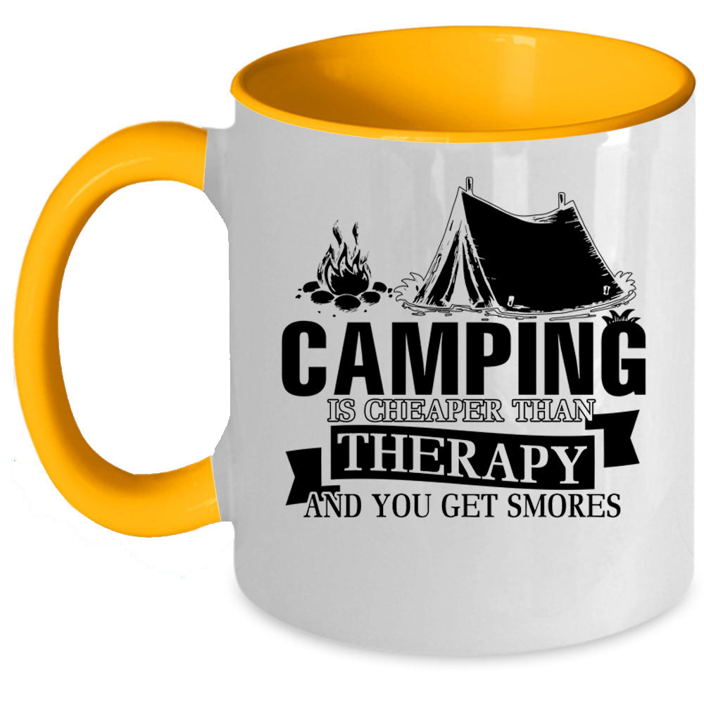 Funny Outdoor Coffee Mug, Camping Is Cheaper Than Therapy Accent Mug