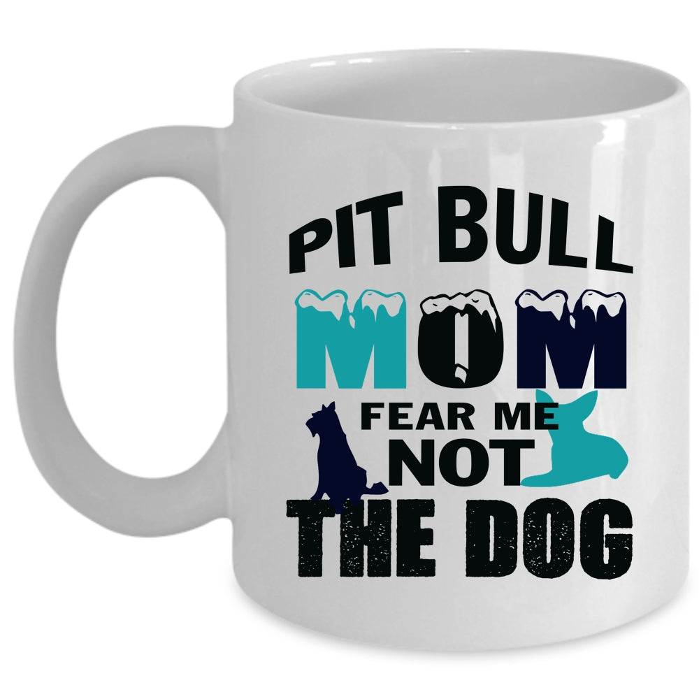 Funny Pitbull Mom Coffee Mug, Pit Bull Mom Fear Me Not The Dog Cup