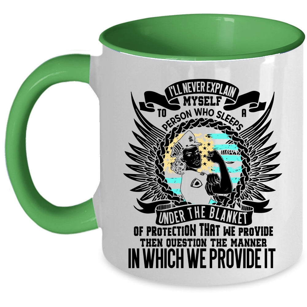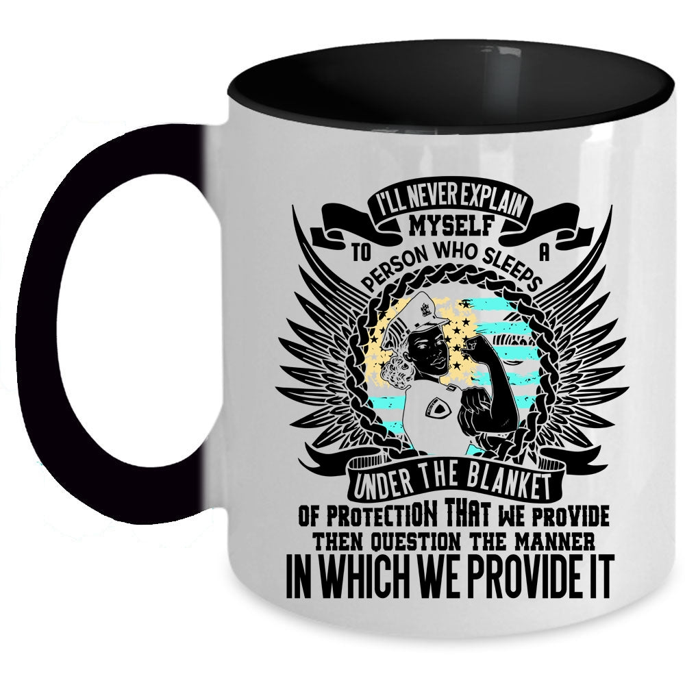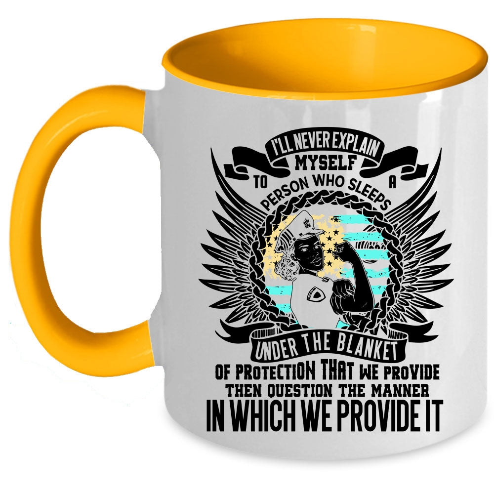 Funny Policeman Coffee Mug, I'll Never Explain Myself To A Person Accent Mug