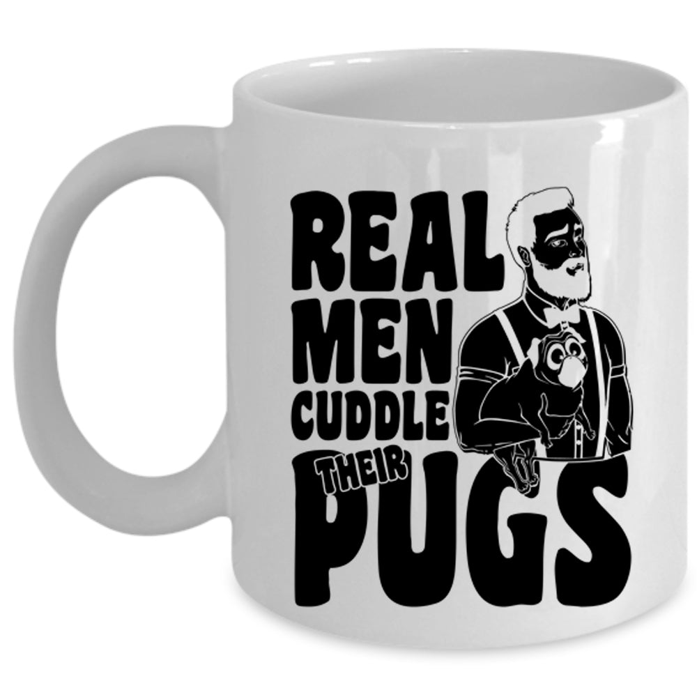 Funny Pug Lover Coffee Mug, Real Men Cuddle Their Pugs Cup