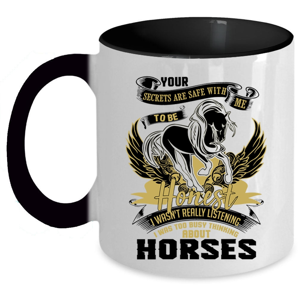 Funny Riding Coffee Mug, I Was Too Busy Thinking About Horses Accent Mug