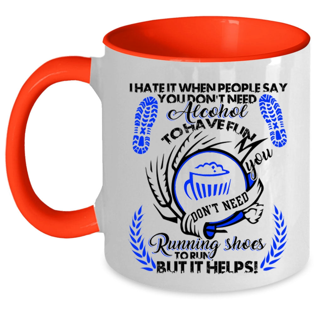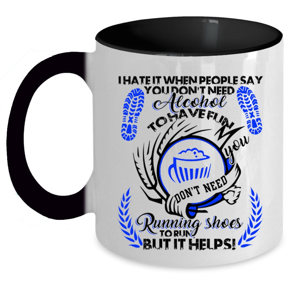 Funny Runner Coffee Mug, You Don't Need Running Shoes To Run Accent Mug