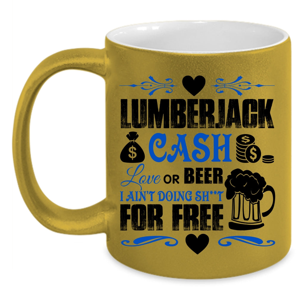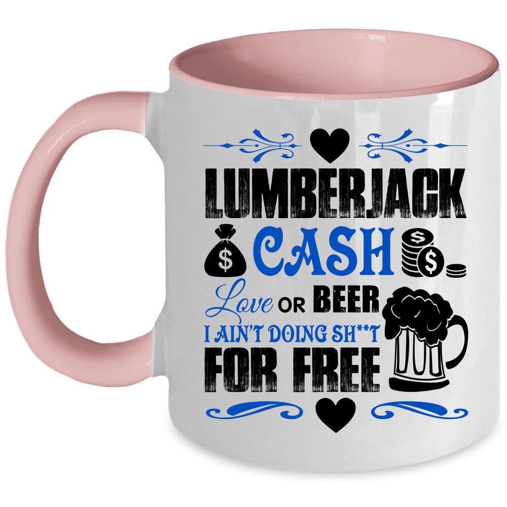 Funny Saying Coffee Mug, Lumberjack Cash Love Or Beer Accent Mug