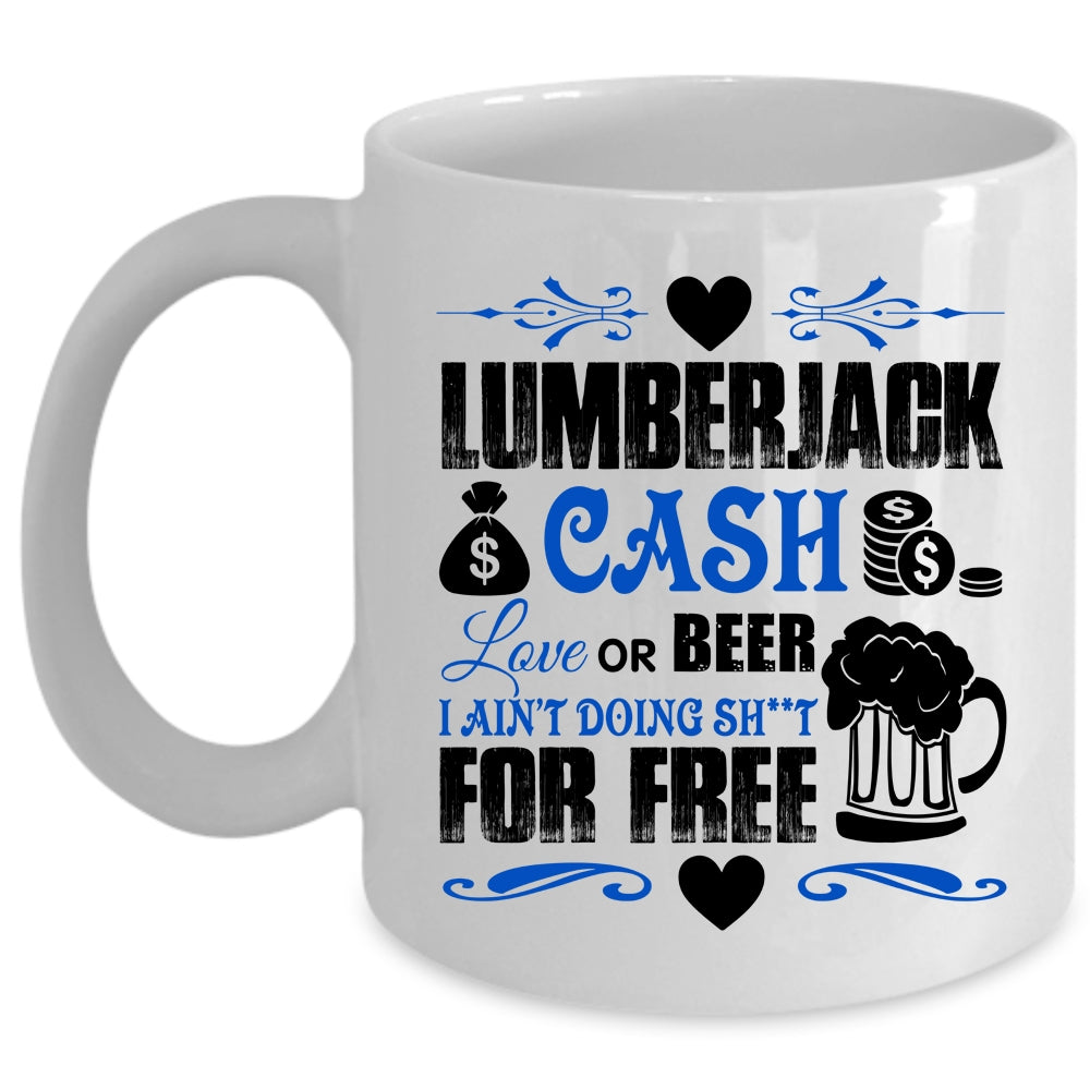 Funny Saying Coffee Mug, Lumberjack Cash Love Or Beer Cup